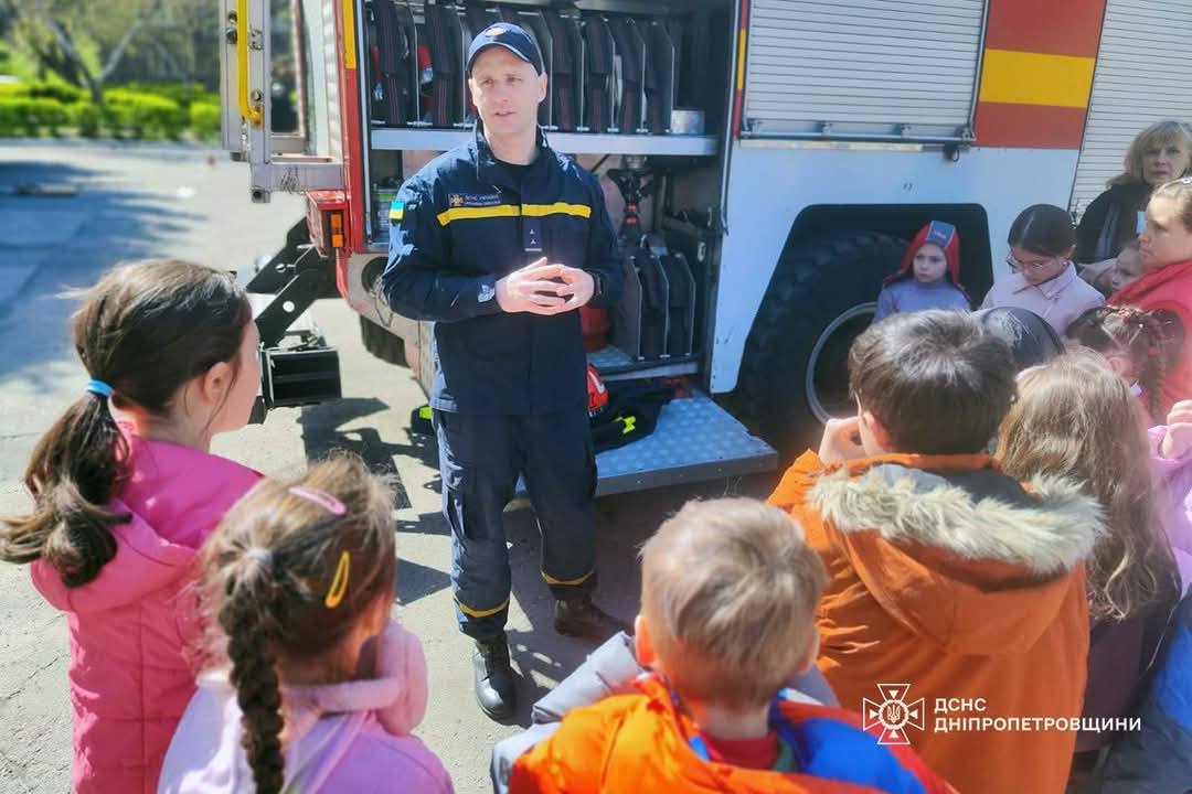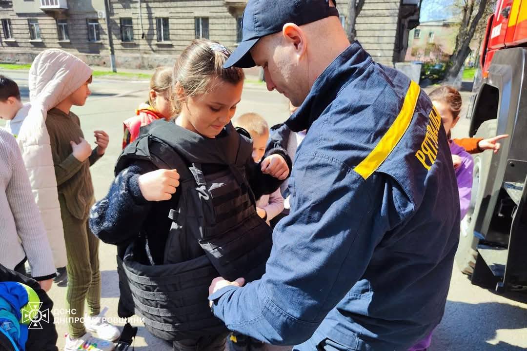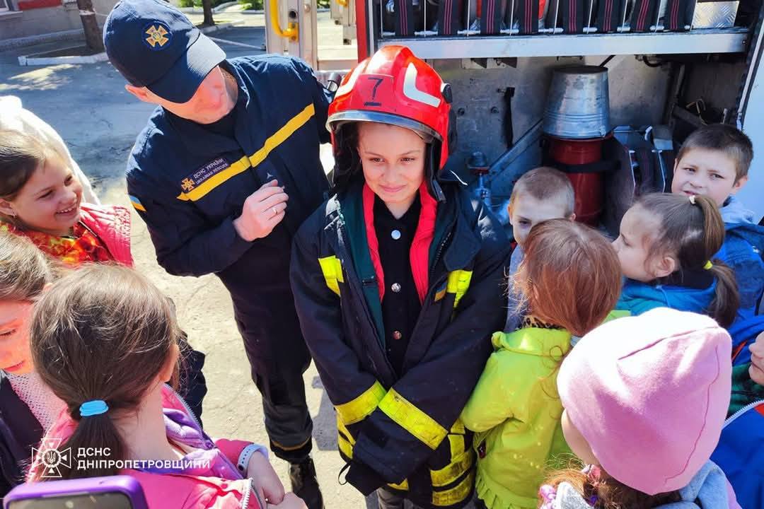 Примерить снаряжение и вспомнить правила пожарной безопасности: чрезвычайники Каменского встретились с учениками гимназии