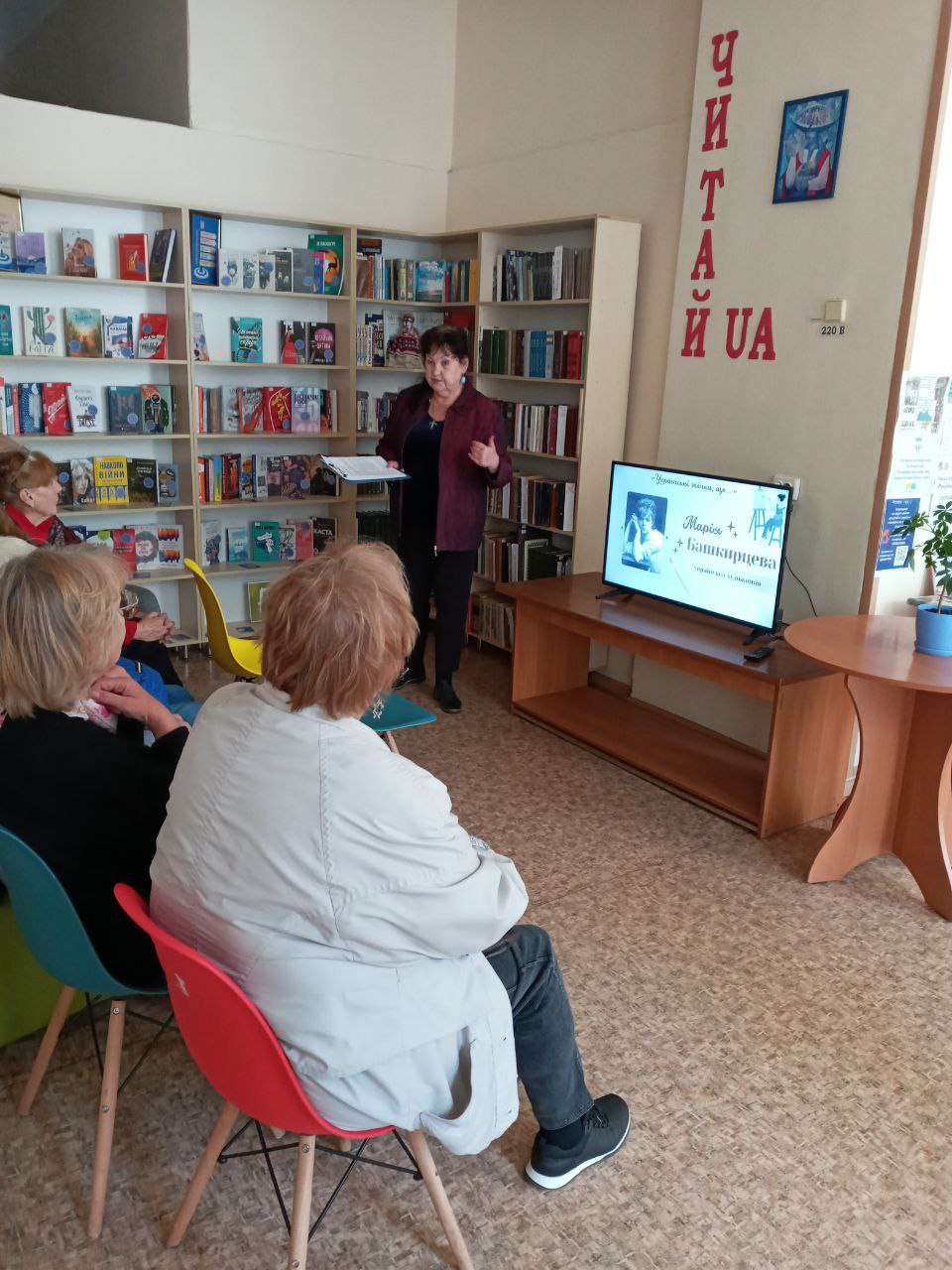 Встречу провела Алла Беленко, ведущий библиотекарь отдела обслуживания пользователей ЦПБ им. Т. Шевченко, которая помогла увидеть личность Башкирцевой через призму современных смыслов и понимания.