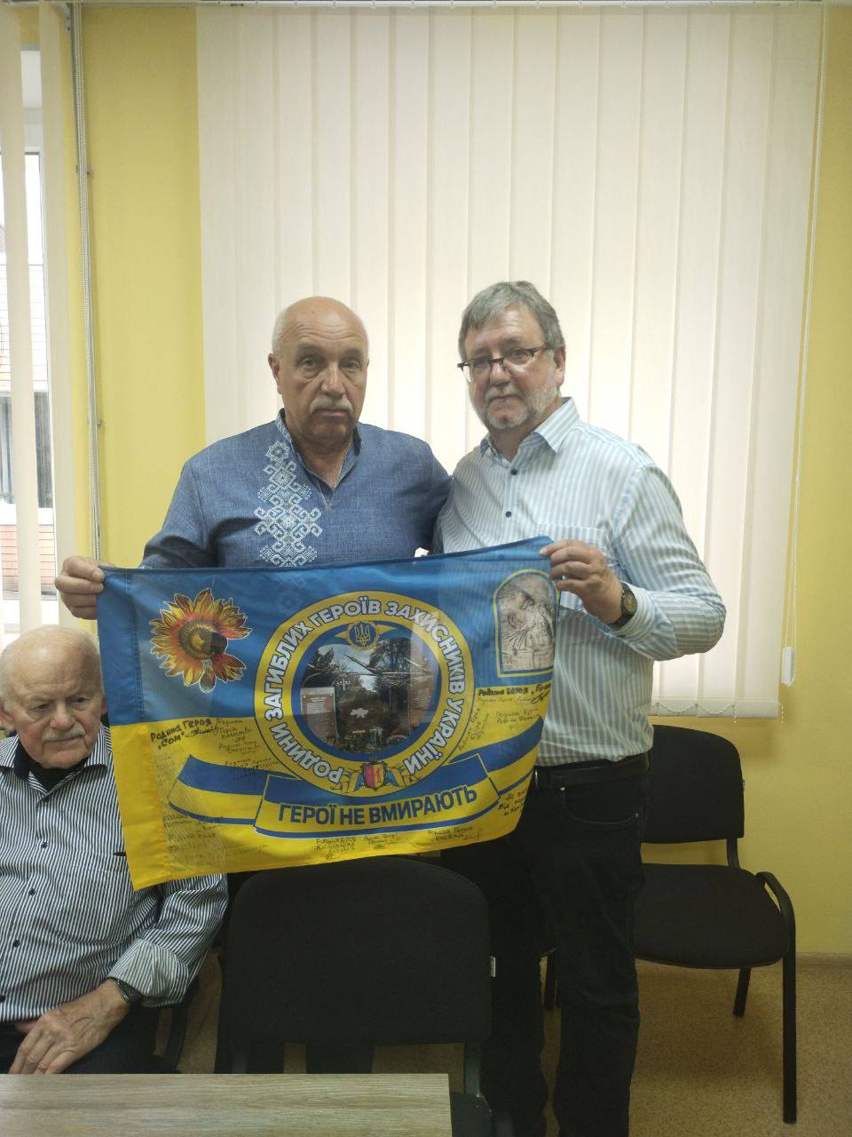 Встреча началась минутой молчания – как знак уважения тем, кто отдал жизнь за Украину. Участникам делегации передали на память флаг с эмблемой организации и подписями семей, вымпел, а также Книгу Памяти, которая хранит истории Героев, погибших за Украину в 2014–2017 годах.