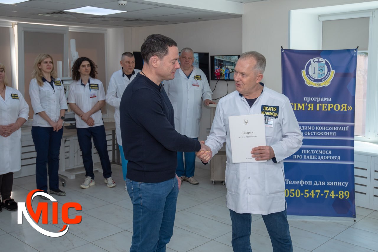 "Наш город оказывает системную поддержку этому учреждению. Мы участвовали в восстановлении здания больницы, закупке современного медицинского оборудования, а также развиваем сотрудничество в сфере реабилитации и спорта. Благодарю генерального директора Сергея Рыженко и всю команду больницы Мечникова за их ежедневный труд. Склоняем головы перед нашими врачами за их профессионализм, за их большие сердца и все, что они делают для нашей страны", — отметил городской голова Каменского Андрей Белоусов.