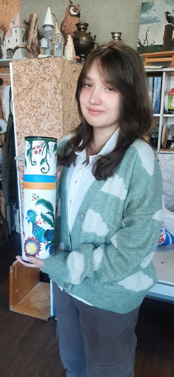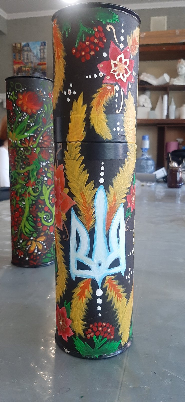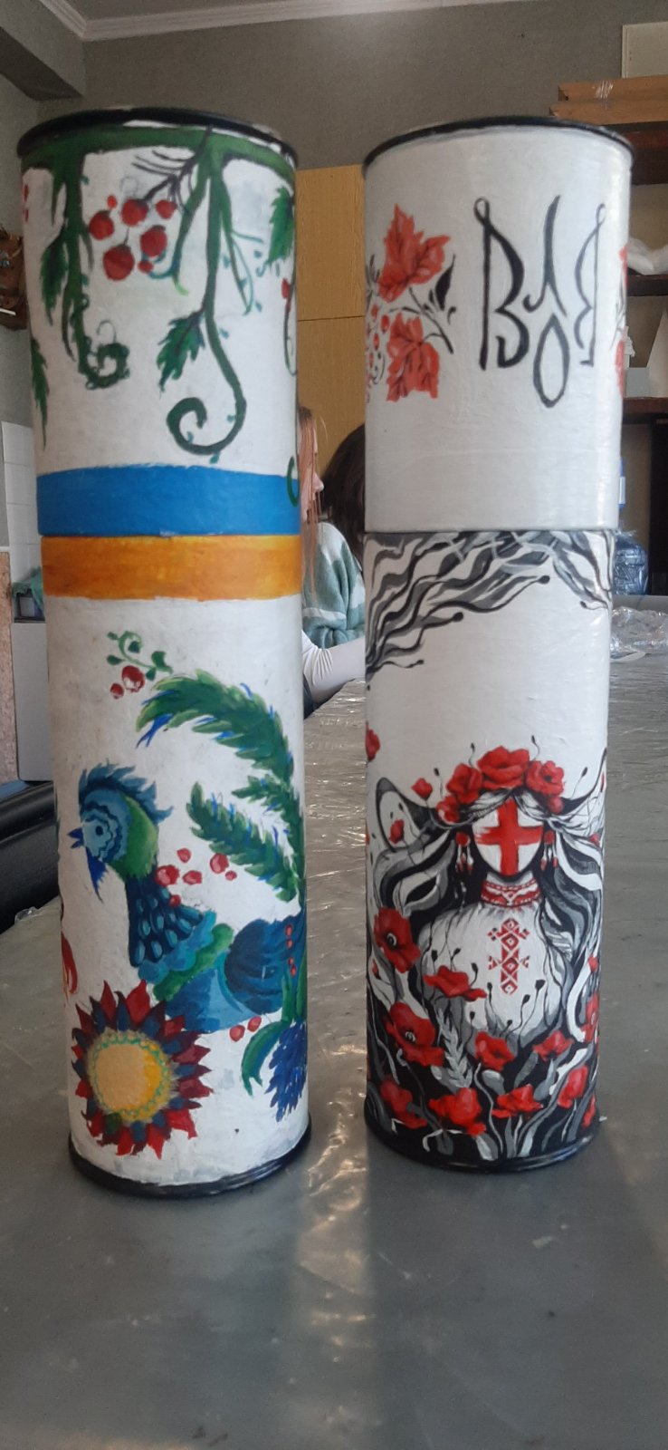 Ученики и преподаватели художественного отделения взяли в руки кисти и превратили гильзы от пушек в произведения искусства. То, что несло разрушение, теперь ожило в красках — стало полотном для калины и подсолнухов, строк Шевченко, символов силы и несгибаемости, для птиц свободы и чарующих пейзажей Украины.