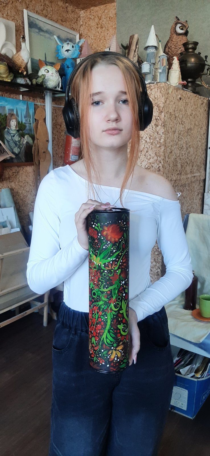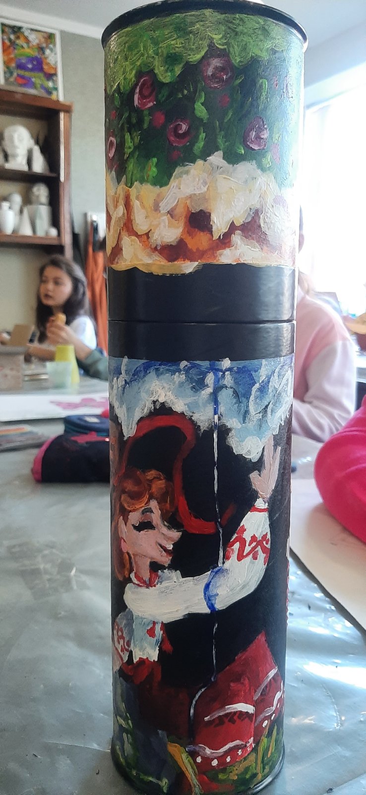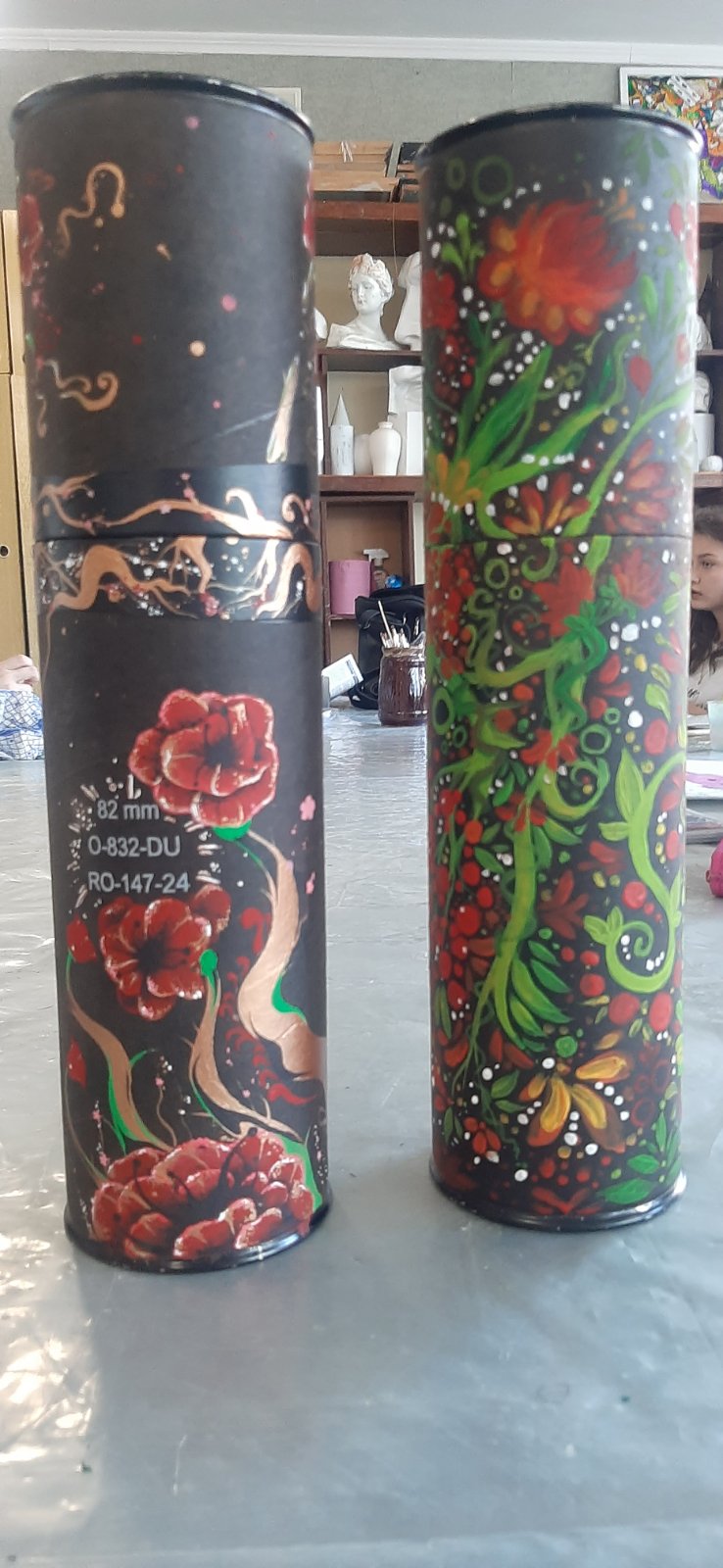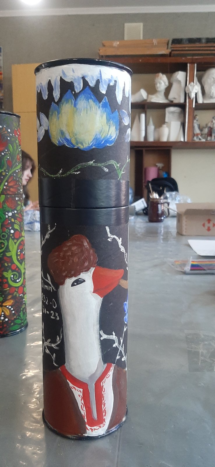 Ученики и преподаватели художественного отделения взяли в руки кисти и превратили гильзы от пушек в произведения искусства. То, что несло разрушение, теперь ожило в красках — стало полотном для калины и подсолнухов, строк Шевченко, символов силы и несгибаемости, для птиц свободы и чарующих пейзажей Украины.