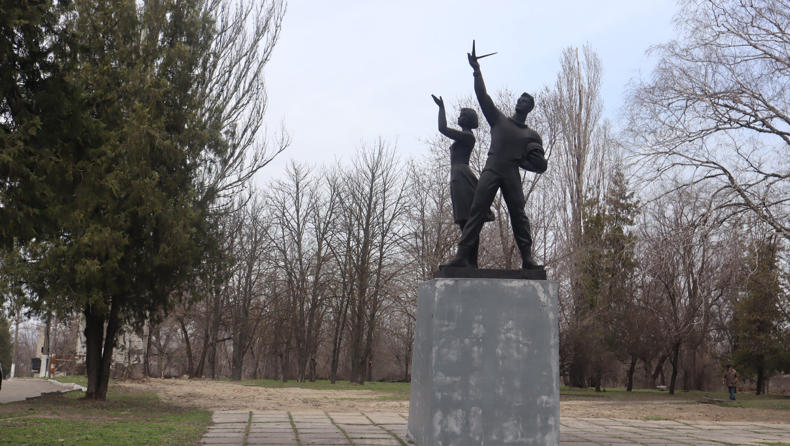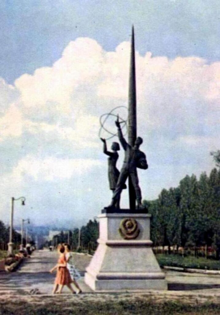 Открытый в 1965 году, этот монумент стал ответом на "космическую лихорадку", охватившую мир после первого полета человека в космос. Изначально он стоял в самом сердце города, на нынешней площади Освободителей. Однако в 1966 году политическая конъюнктура изменилась: Леониду Брежневу вторично присвоили звание Героя СССР, что обязывало установить его бюст на родине. Власти решили, что космическая группа должна "уступить место" политическому лидеру страны.