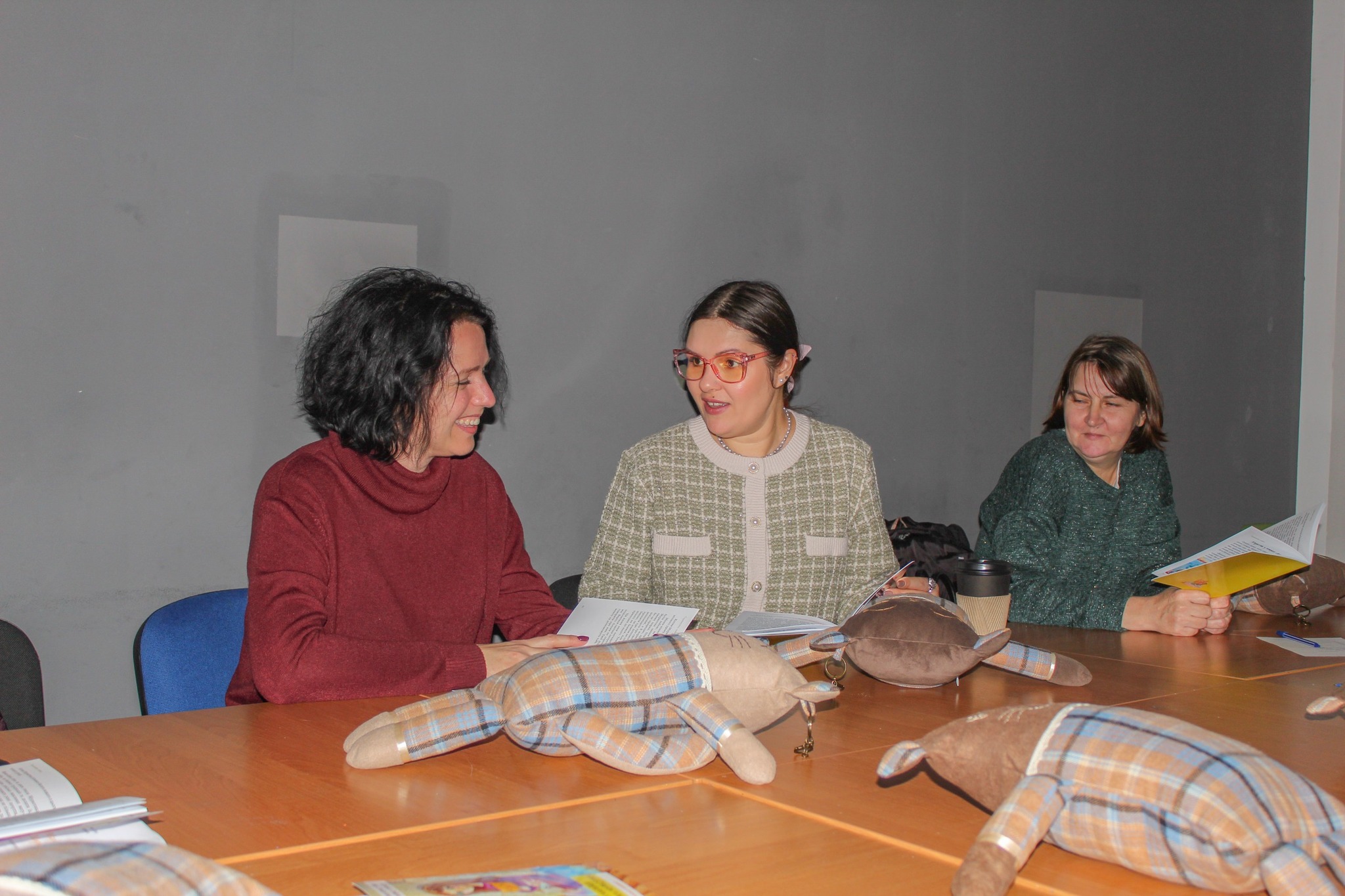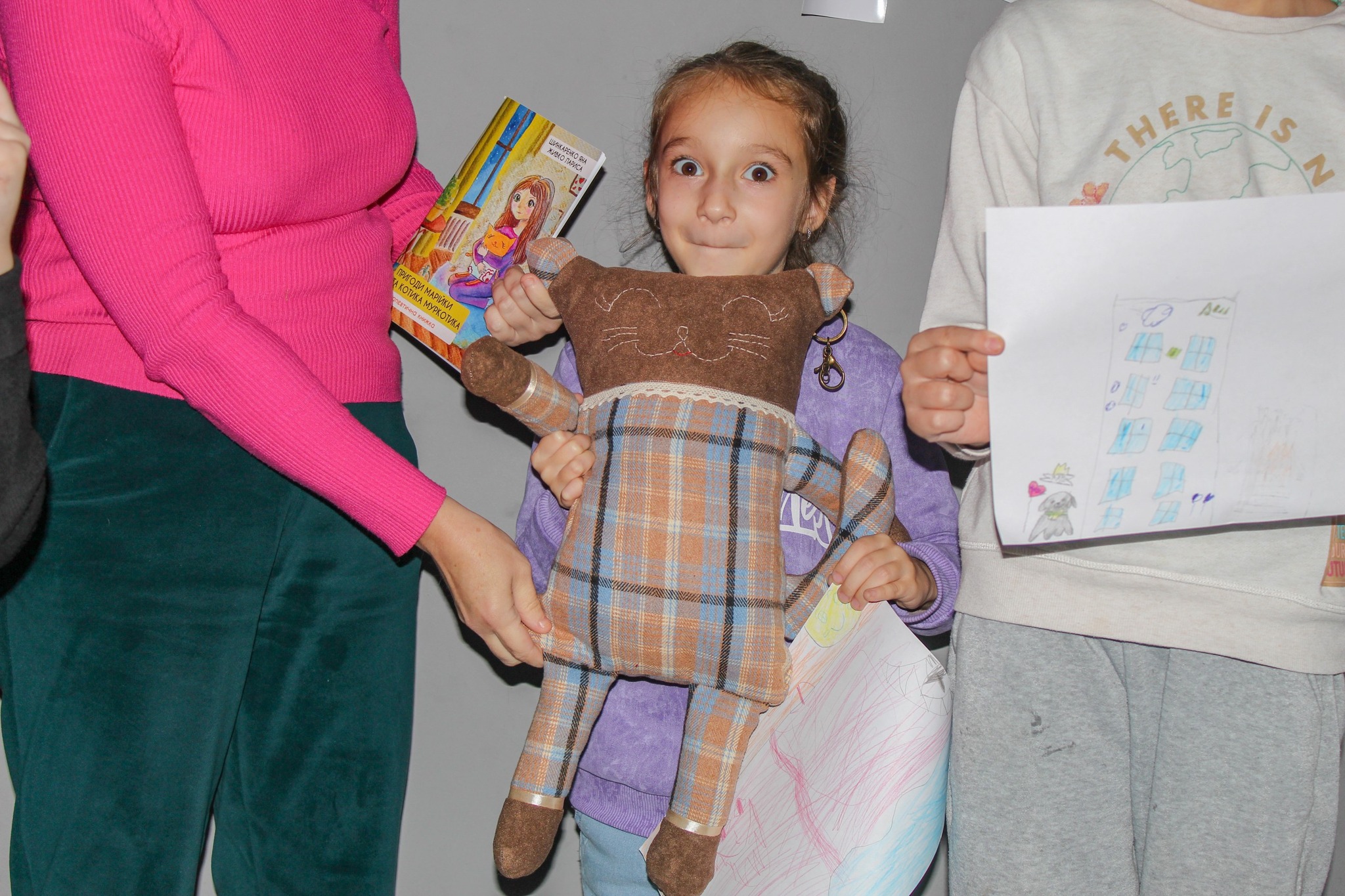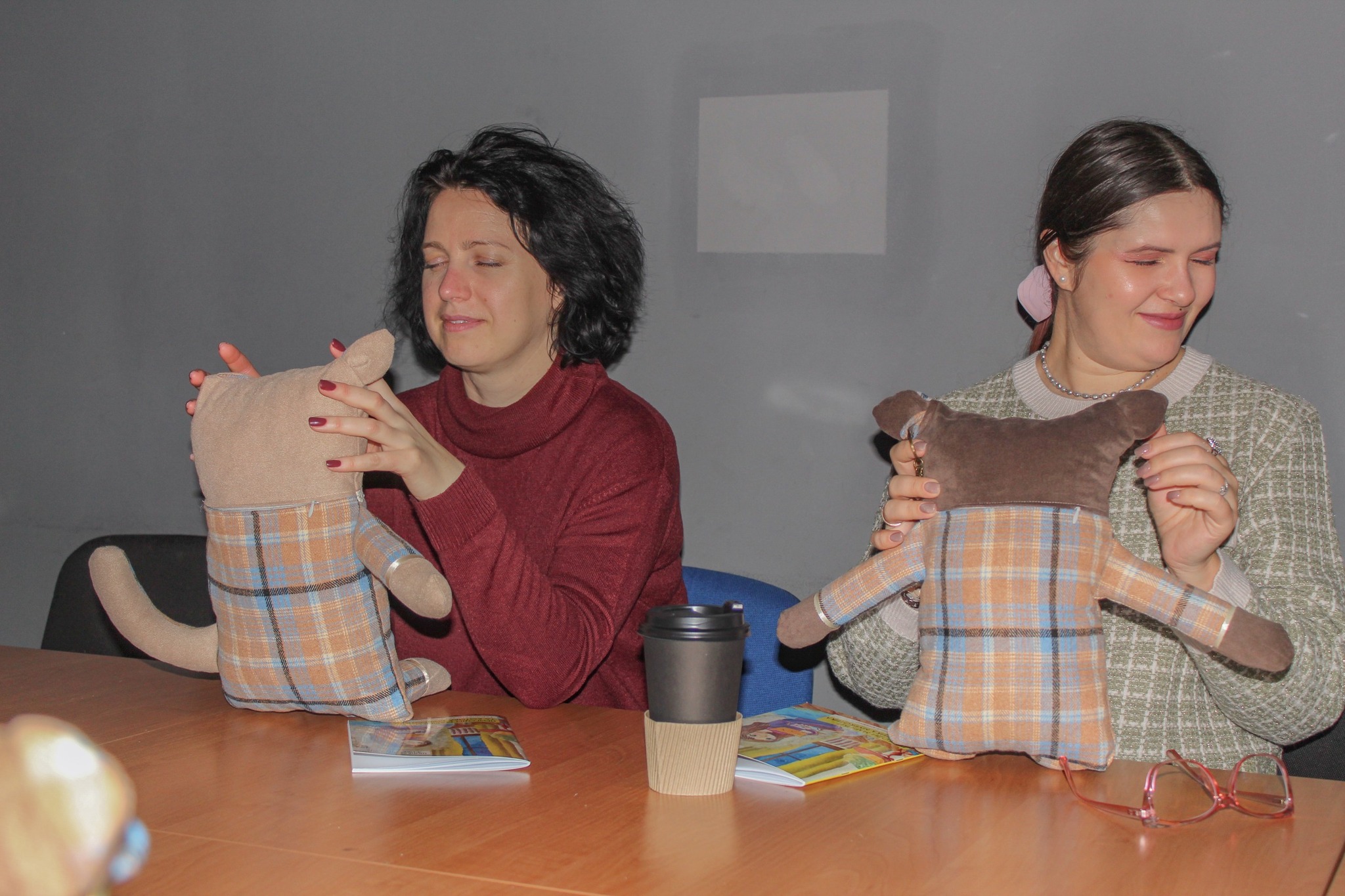 Родители не только получили теоретические знания, но и практиковались в чтении терапевтических сказок, в том числе из книжки "Приключения Марийки и котика-Муркотика". Каждый участник получил на память книжку и мягкую игрушку-кота для дальнейшей терапии дома.