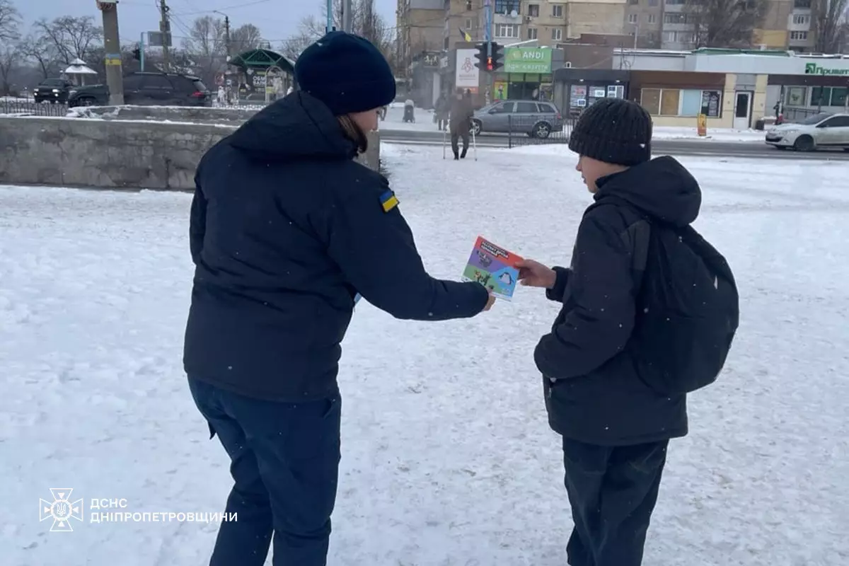 Юным горожанам объясняли основные риски зимнего периода: выход на лед, передвижение по улице в темное время суток, контакт с взрывоопасными предметами, а также напоминали правила безопасности. Кроме того, спасатели вручали взрослым и детям буклеты с полезной информацией, разработанной ГСЧС Украины совместно с ЮНИСЕФ.