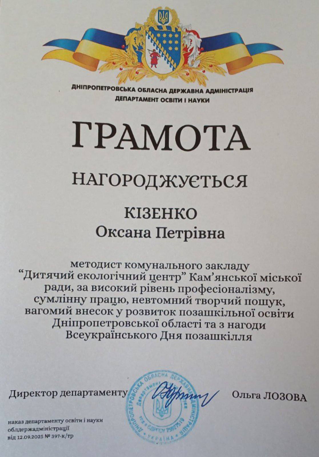 Специалисты Детского экологического центра Каменского – в числе лучших педагогов Днепропетровщины