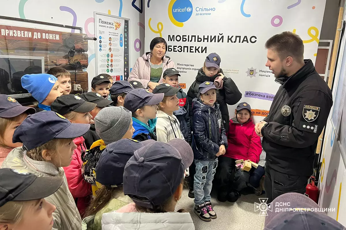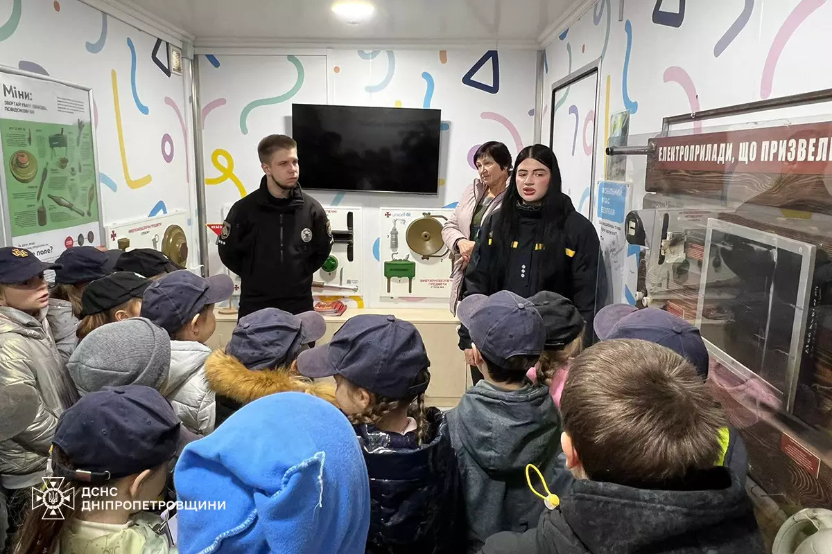 Помощь в проведении занятия оказывали офицеры ГСЧС и Национальной полиции. Дети имели возможность ознакомиться с учебными стендами и макетами, а также прослушать лекцию о действиях в случае возникновения чрезвычайных ситуаций.