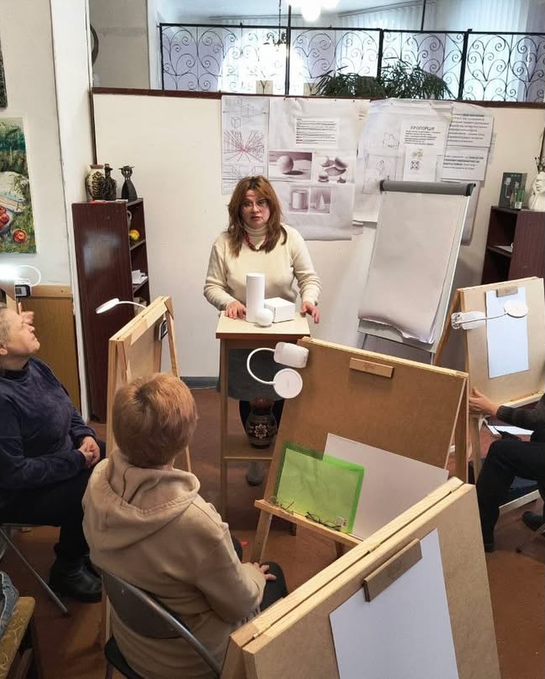 Учебный процесс продолжается и в студии живописи "Алла". Художница Алла Михальчук проверяет работы учащихся и контролирует выполнение заданий. Ее опыт и профессионализм помогают участникам совершенствовать мастерство и открывать новые грани собственного таланта.