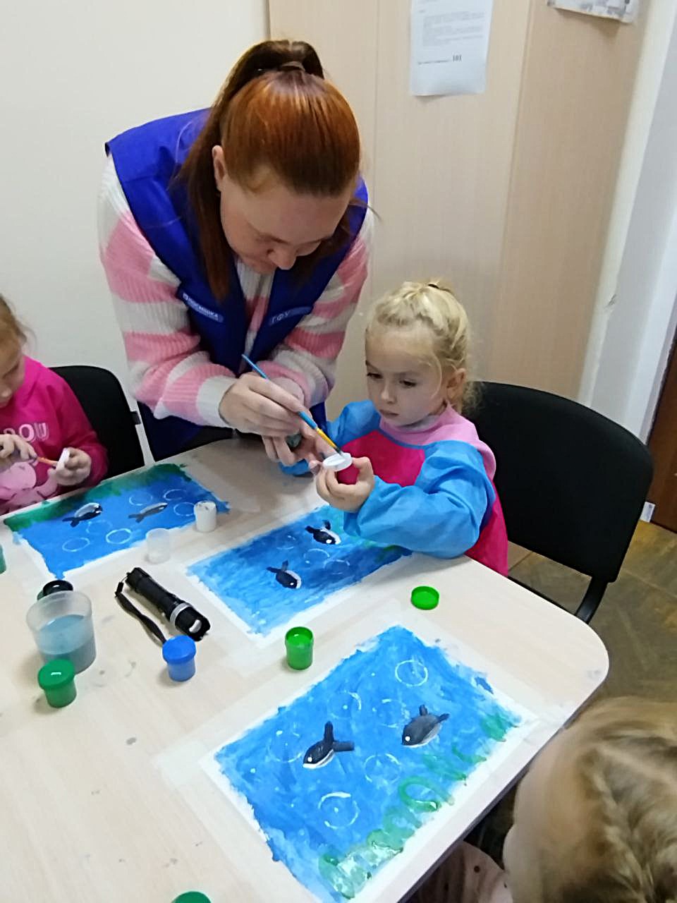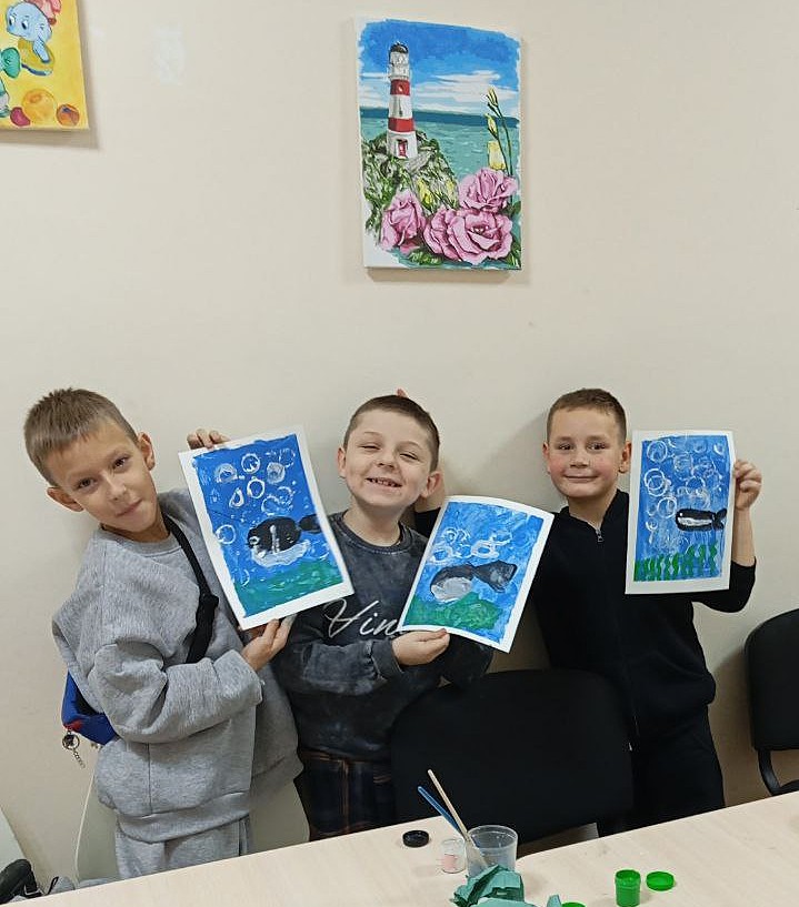 Ребята создавали акварельное панно "Подводное царство". Рисуя дружелюбных обитателей моря, они развивали фантазию, мелкую моторику, ощущение внутреннего равновесия. Через цвета дети передавали свое настроение и эмоции, погружаясь в мир творчества и игры.