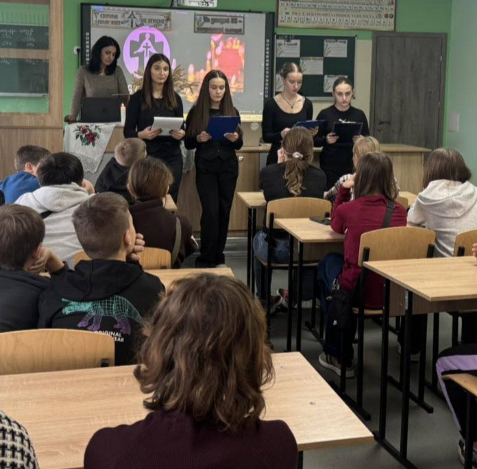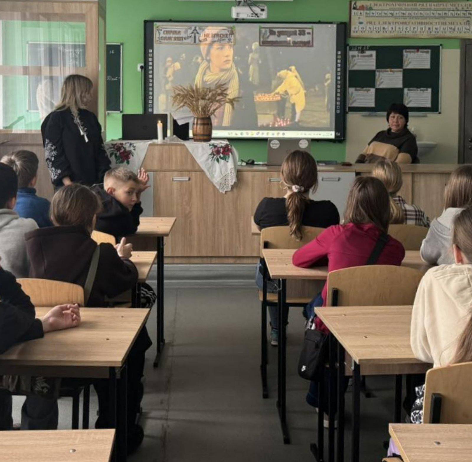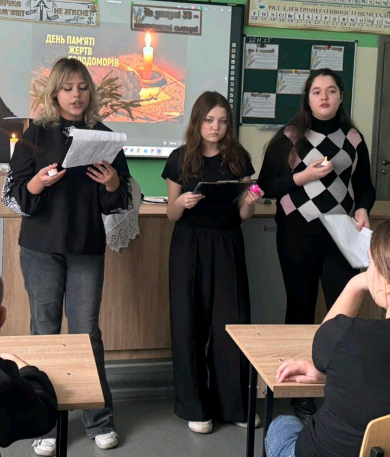 26 ноября ученики 9-А класса провели для шестиклассников час-реквием "Жатва скорби", напоминая о трагических событиях и их последствиях.
