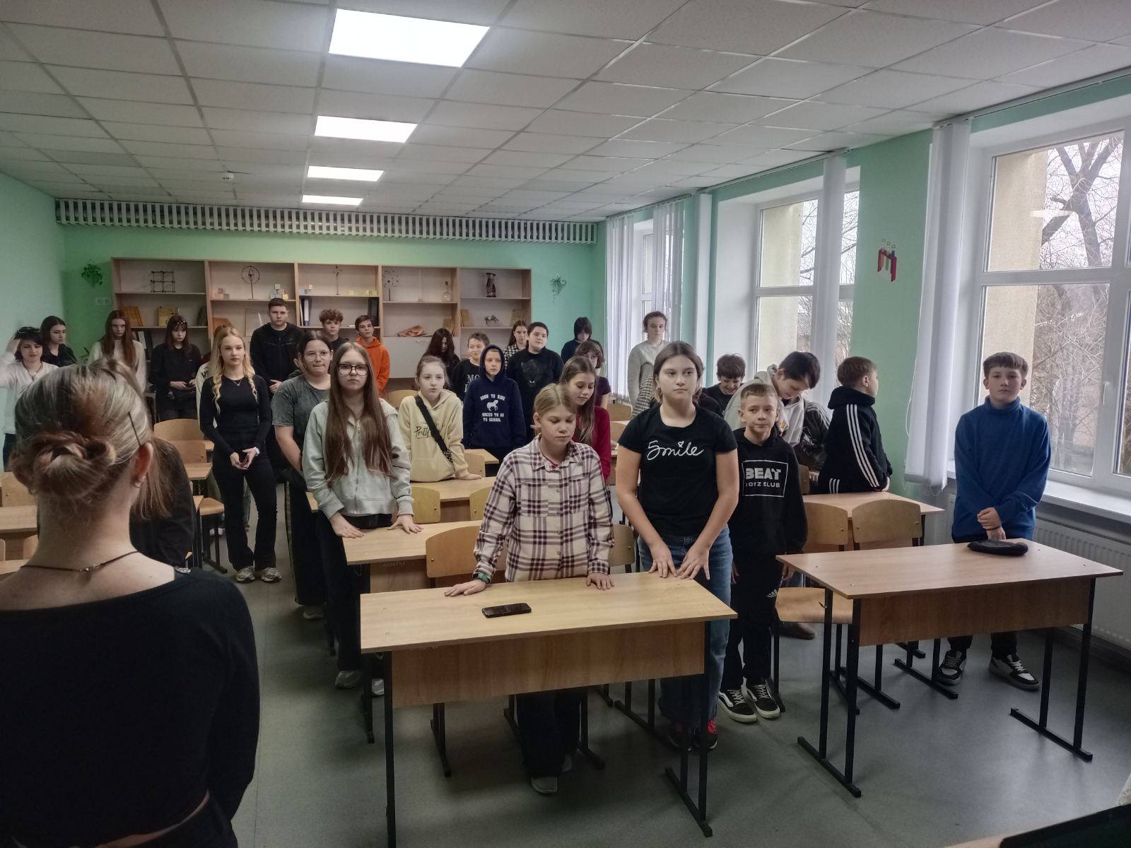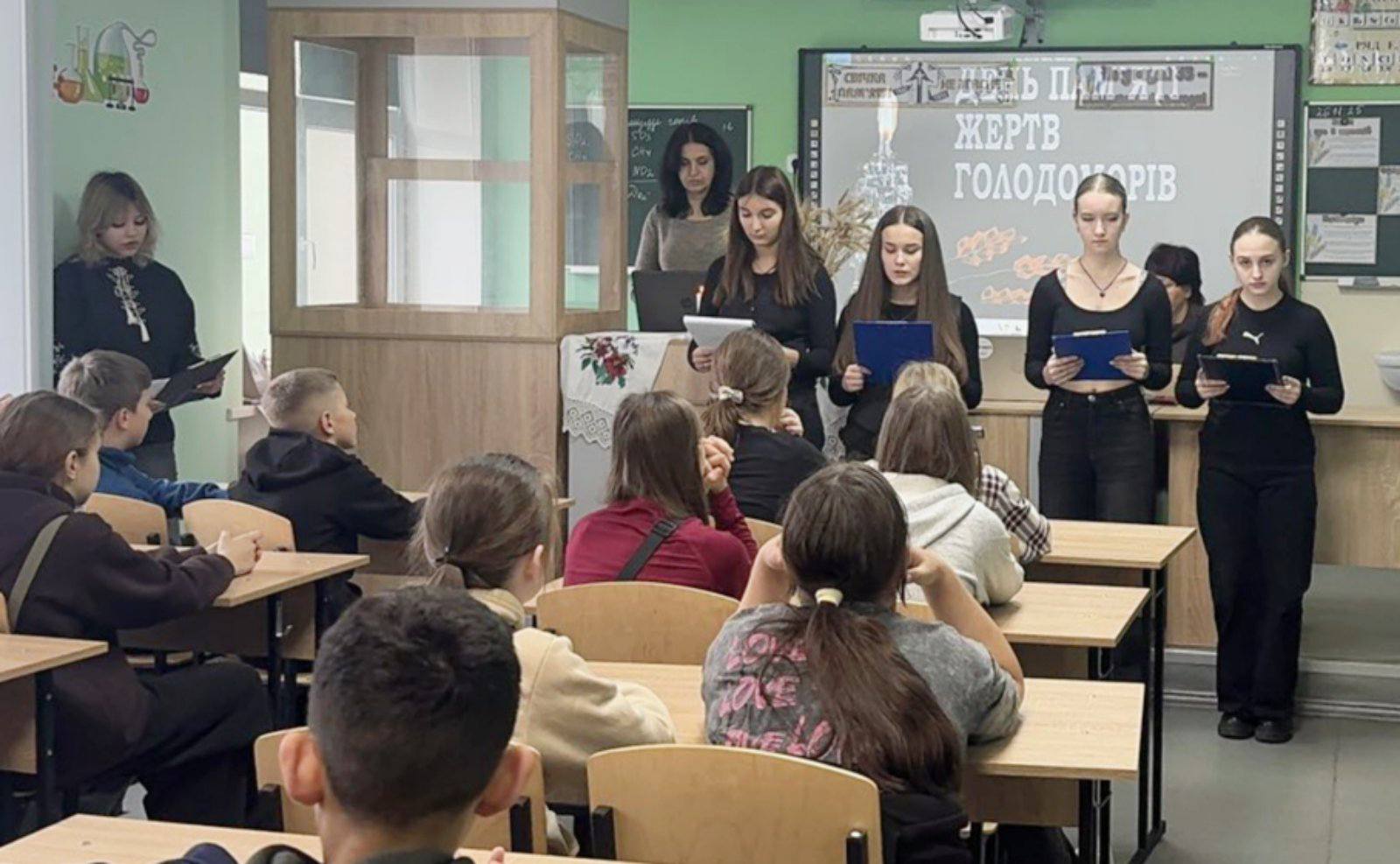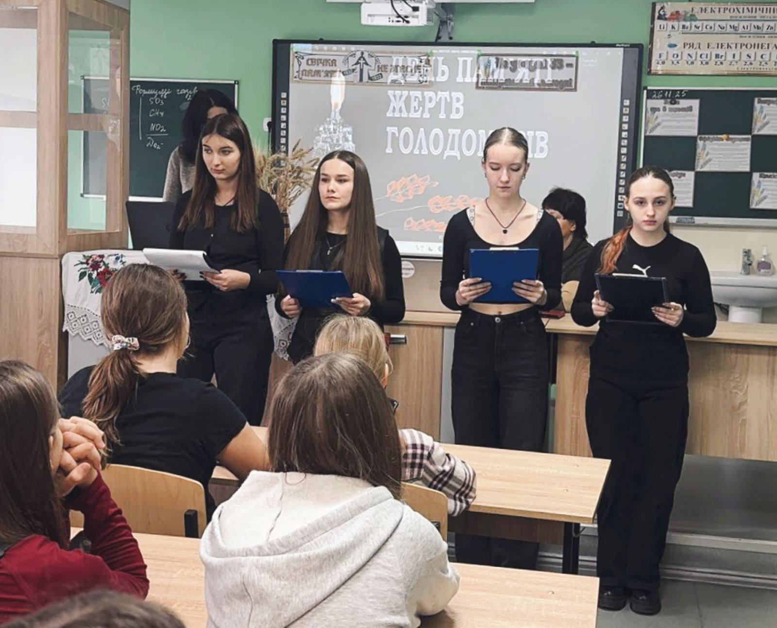 26 ноября ученики 9-А класса провели для шестиклассников час-реквием "Жатва скорби", напоминая о трагических событиях и их последствиях.