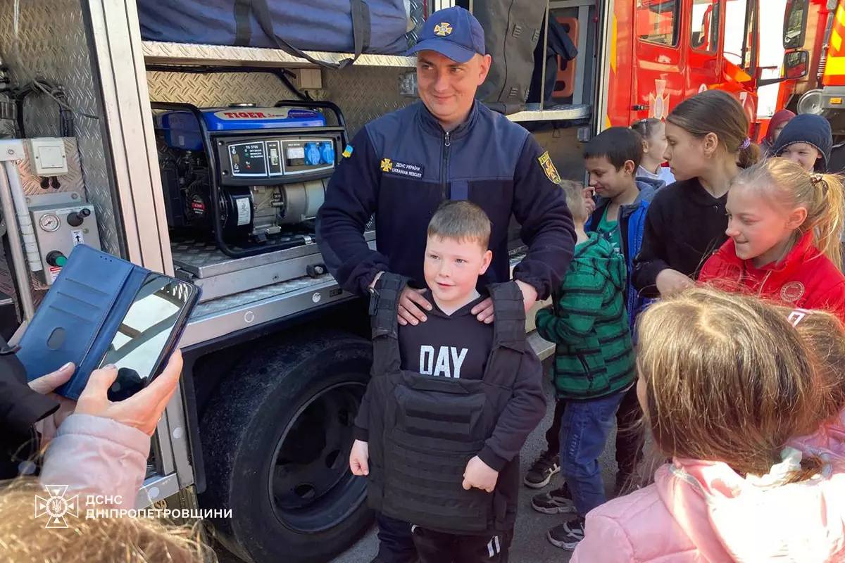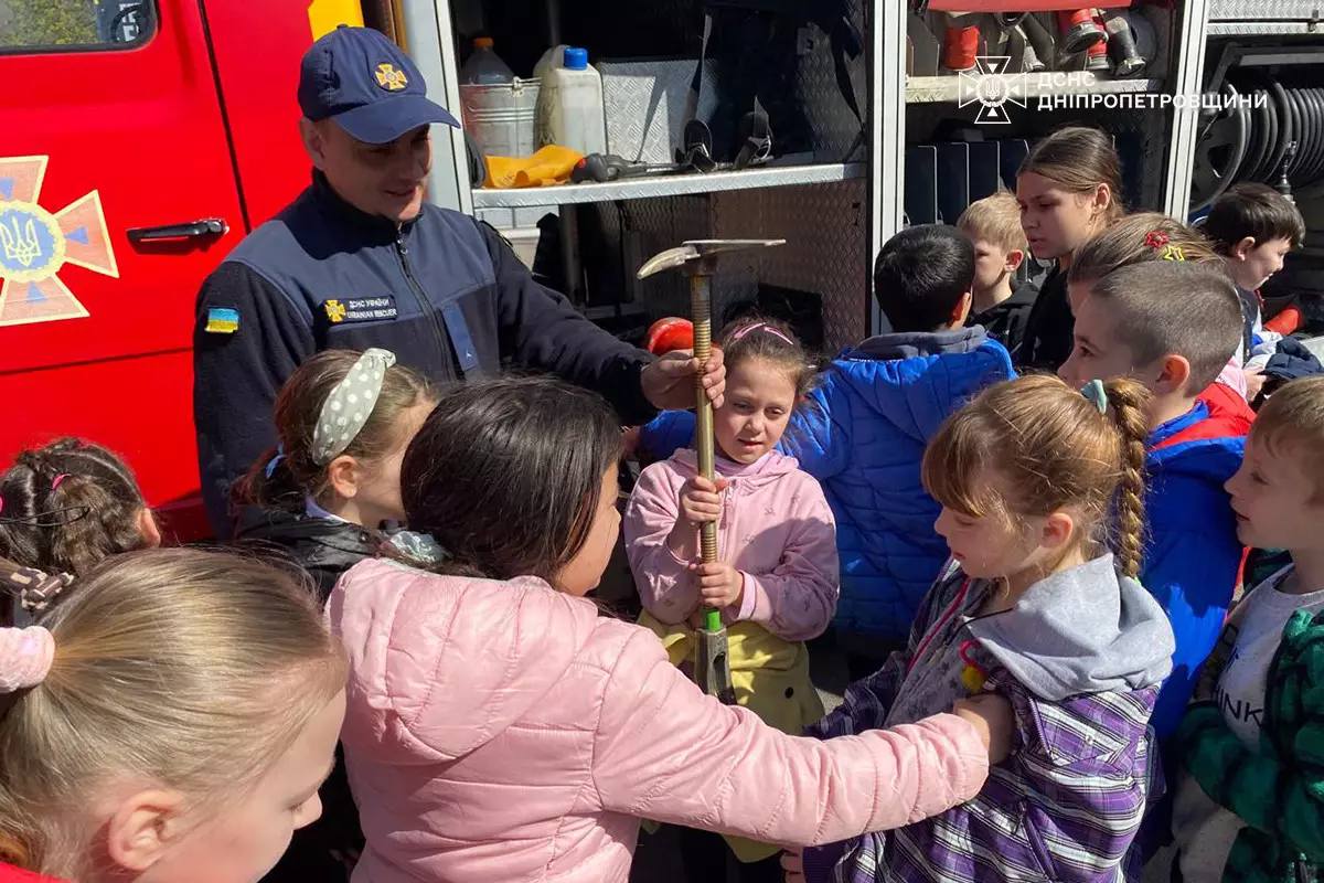 На днях чрезвычайники Каменского посетили учеников начальных классов одной из местных гимназий. Целью визита стало знакомство детей с особенностями профессии спасателя и обучение основам безопасности.