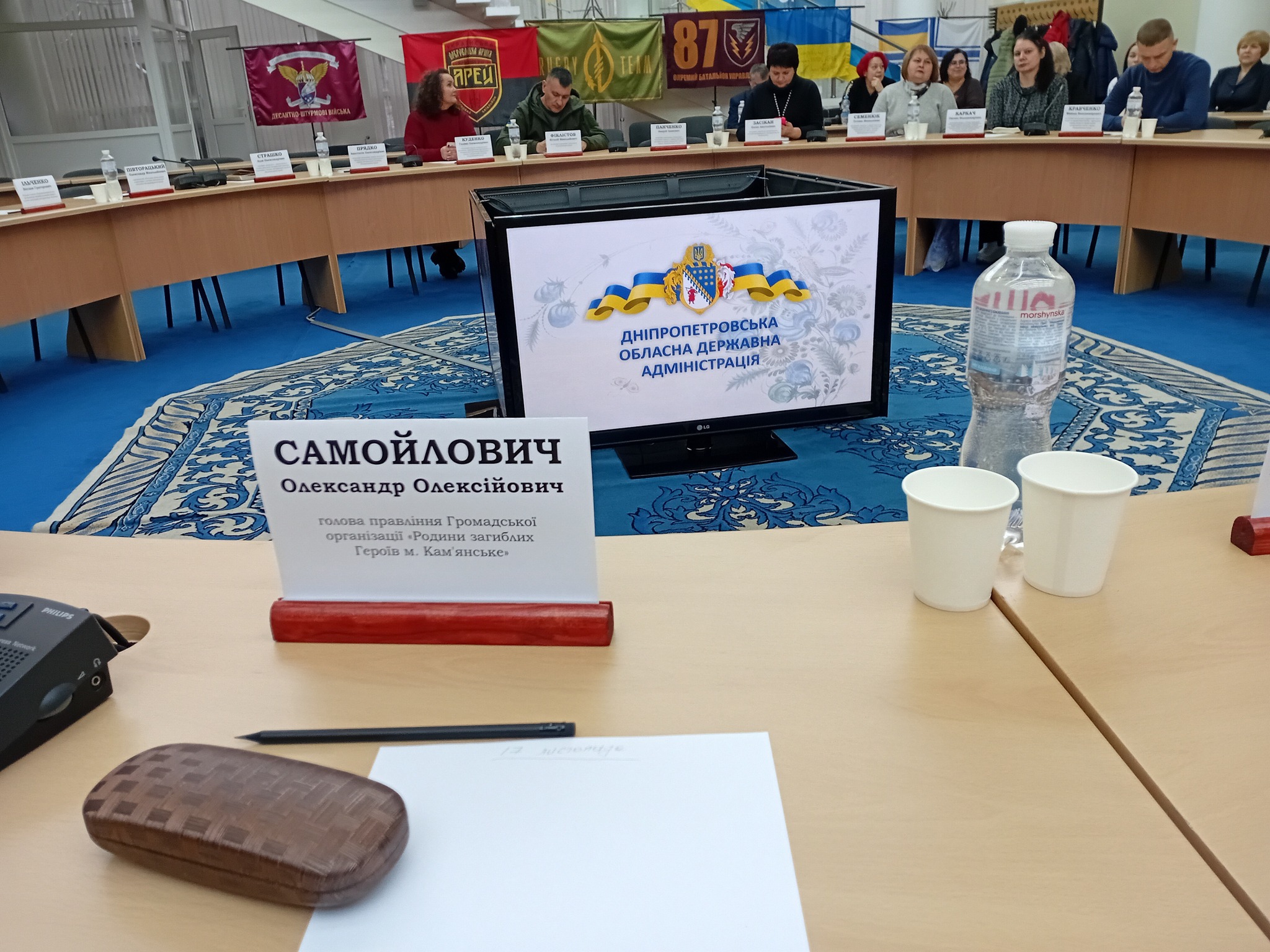Недавно в Днепропетровской областной военной администрации состоялась рабочая встреча Совета по вопросам ветеранов при облвоенадминистрации под председательством и. о. начальника ОВА Владислава Гайваненко. Участие во встрече принял и председатель общественной организации "Семейства погибших Героев-защитников Украины" города Каменского Александр Самойлович.