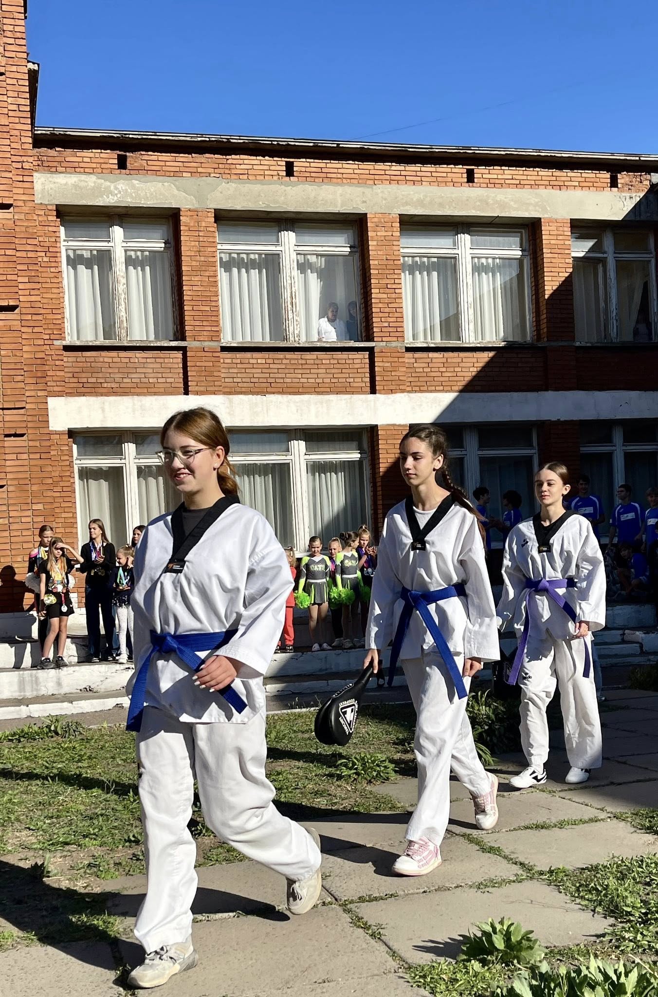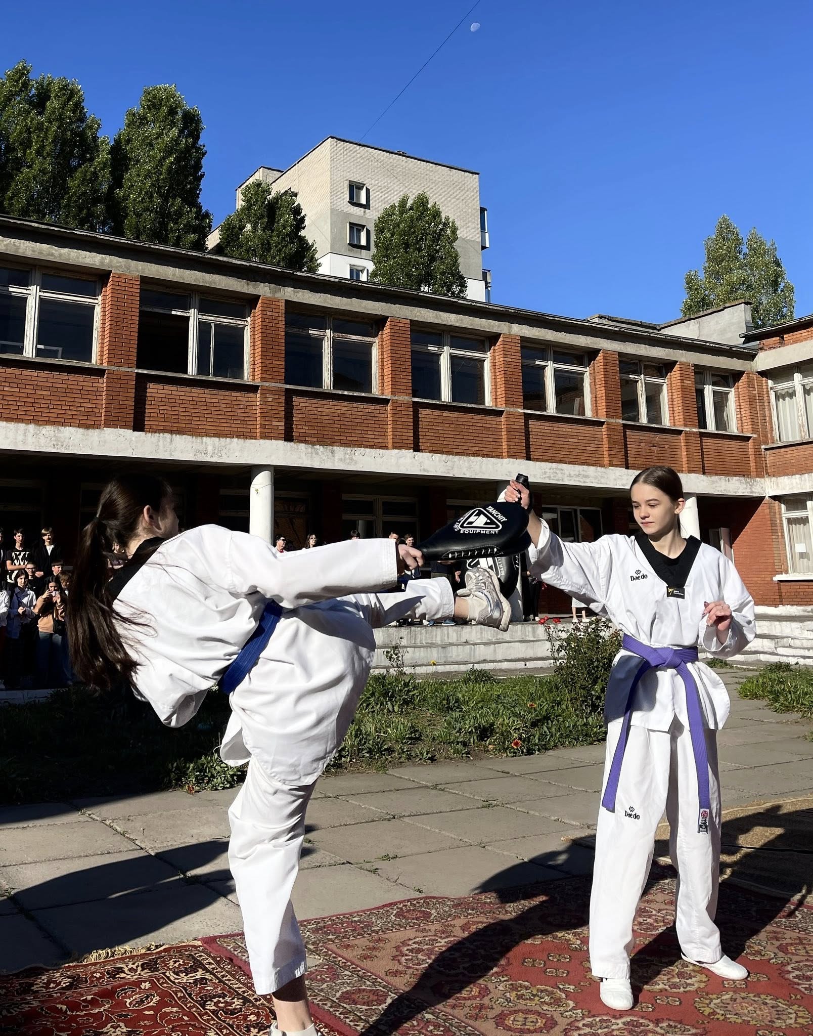 Юные воспитанники кружка тхеквондо поразили динамичными комбинациями и отточенной техникой, доказывая, что этот вид спорта сочетает силу, дисциплину и красоту движения. Участники кружка киокушин-кан-карате продемонстрировали мощь и зрелищность боевого искусства.