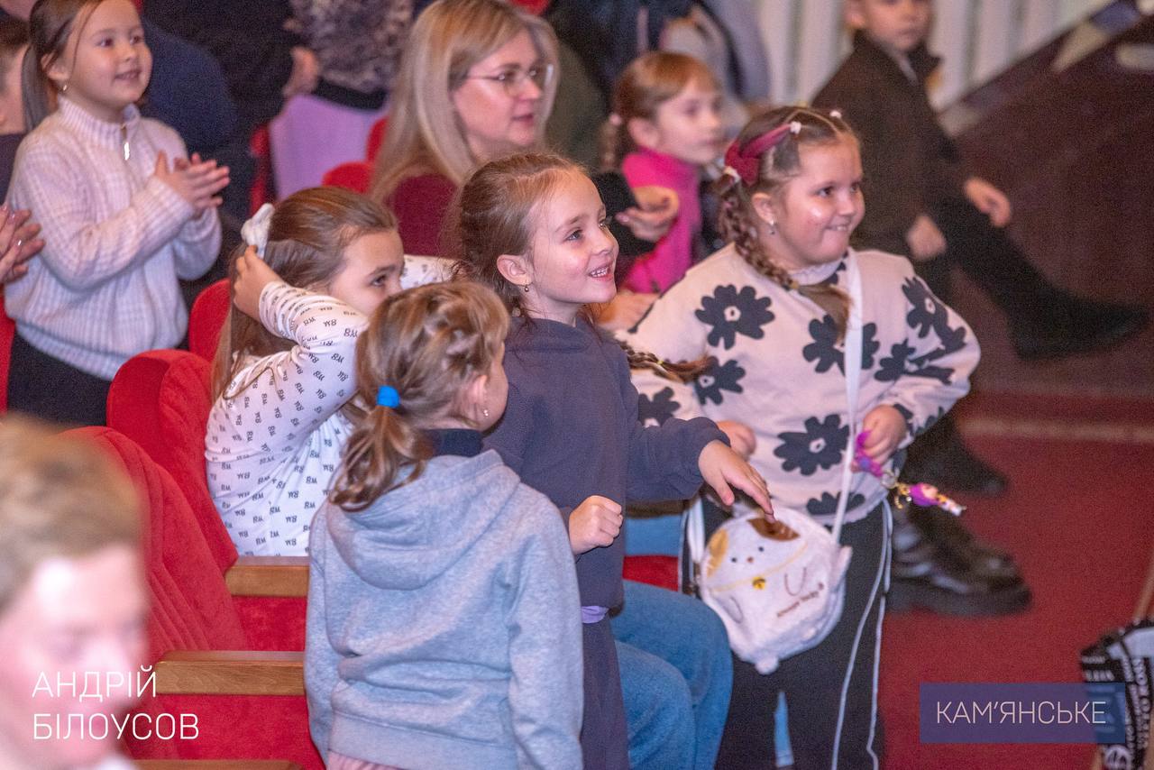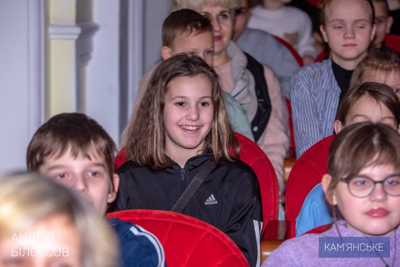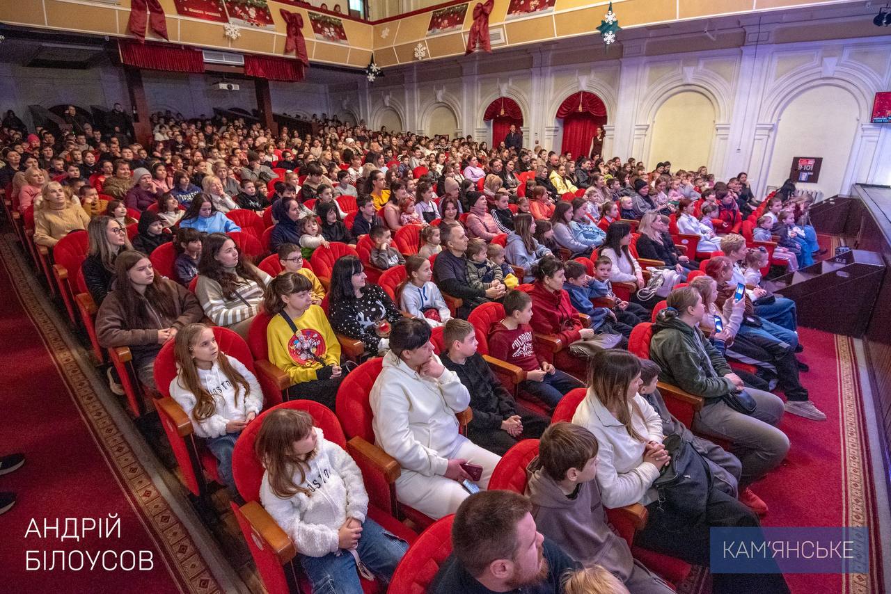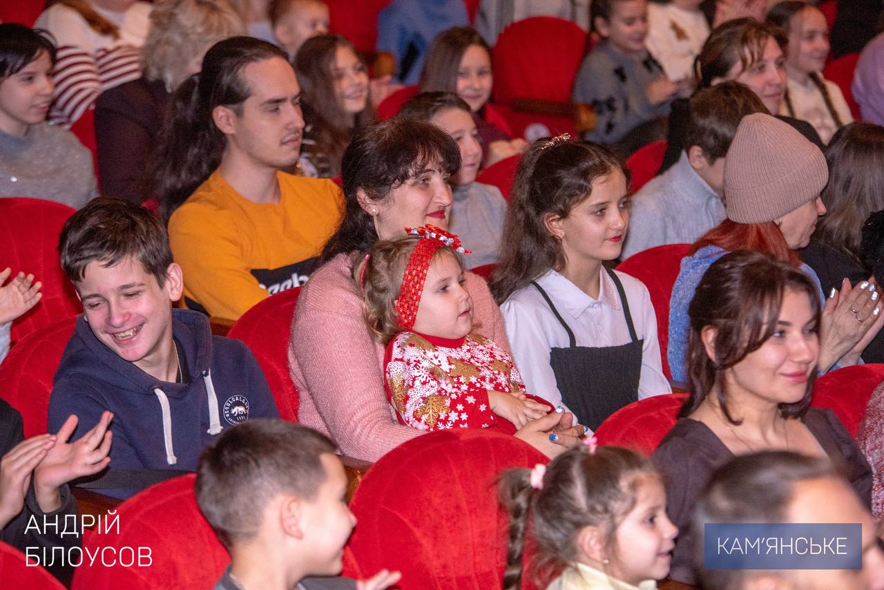 В зале — дети павших Защитников и Защитниц, внутри перемещенных семей, многодетных семей, дети с инвалидностью и другие мальчики и девочки, для которых забота общины имеет особое значение. Для них встреча в театре — о радости, подарках, ощущениях праздника и безопасности.
