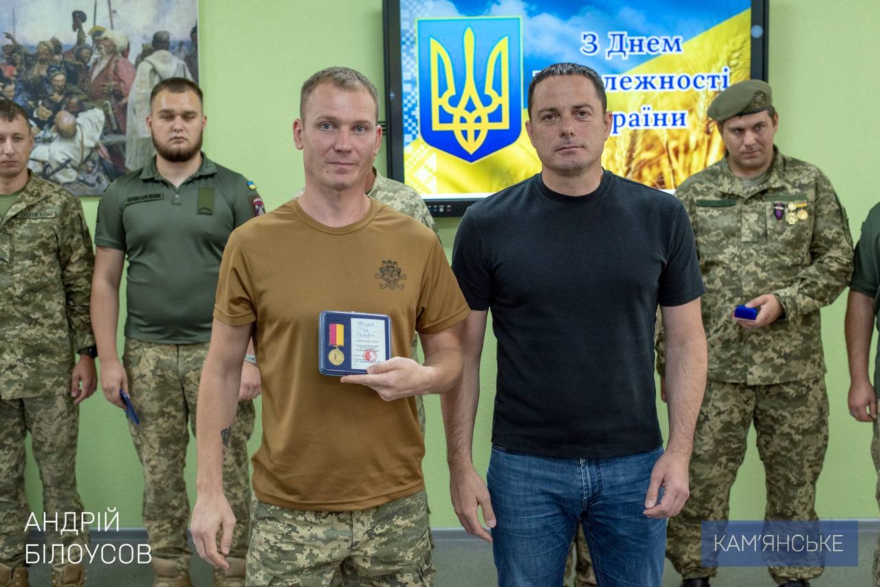 Сегодня в Ветеранском пространстве Каменского состоялось торжественное мероприятие ко Дню Независимости Украины. Городской голова Андрей Белоусов от имени всего города поблагодарил наших воинов за силу, мужество и отвагу. Он добавил, что было честью вручить награды каменчанам, которые встали на защиту родной земли и чьей стойкостью гордится община.