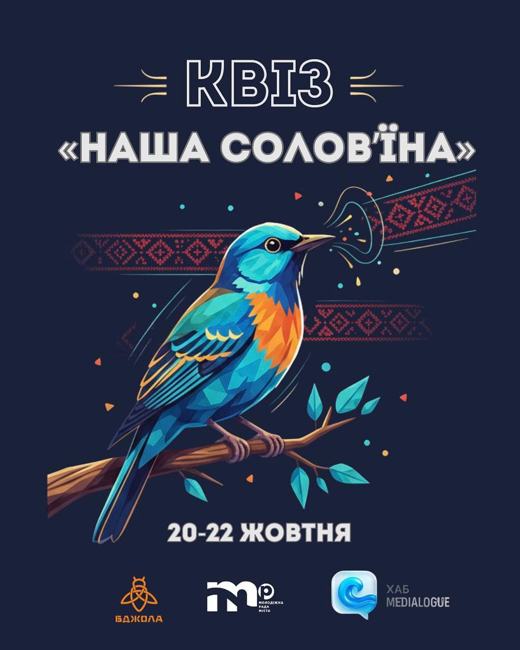 Ко Дню украинской письменности и языка общественная организация "Молода Бджола" совместно с Молодежным советом приглашает учеников 9–11 классов принять участие в викторине "Наша соловьиная".