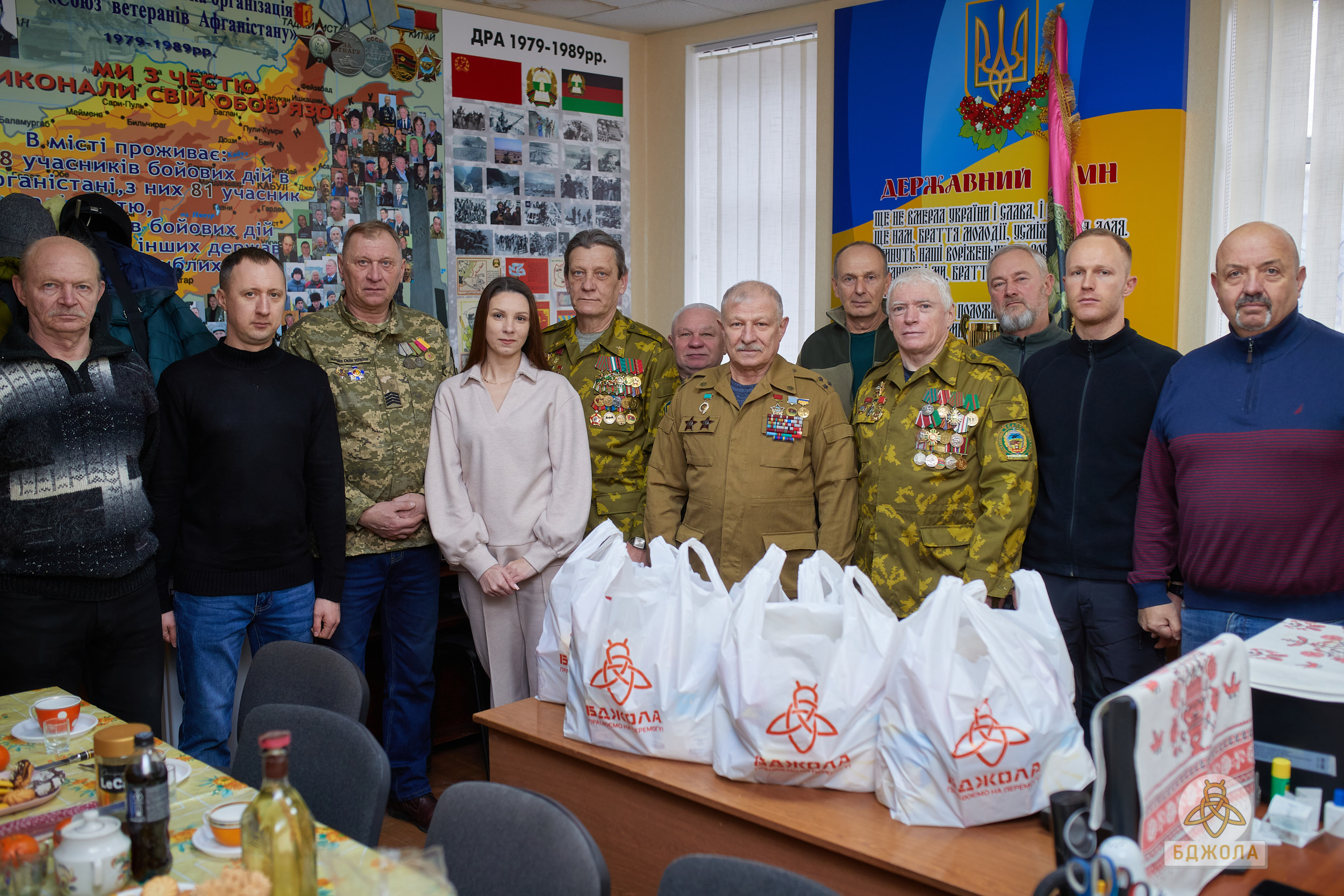 Чтобы выразить свою поддержку, активисты ОО "Бджола" встретились с представителями ОО "Союз ветеранов Афганистана" во главе с Олегом Качуровским. Встреча прошла в теплой и непринужденной атмосфере. Ветеранов поблагодарили за их стойкость и вручили продуктовые наборы — это небольшая, но искренняя помощь, которая является символом заботы и поддержки, о тех, кто некогда был вынужден рисковать жизнью в чужой стране, а сейчас всеми силами помогает Украине выстоять в противостоянии с сильным и жестоким врагом. .