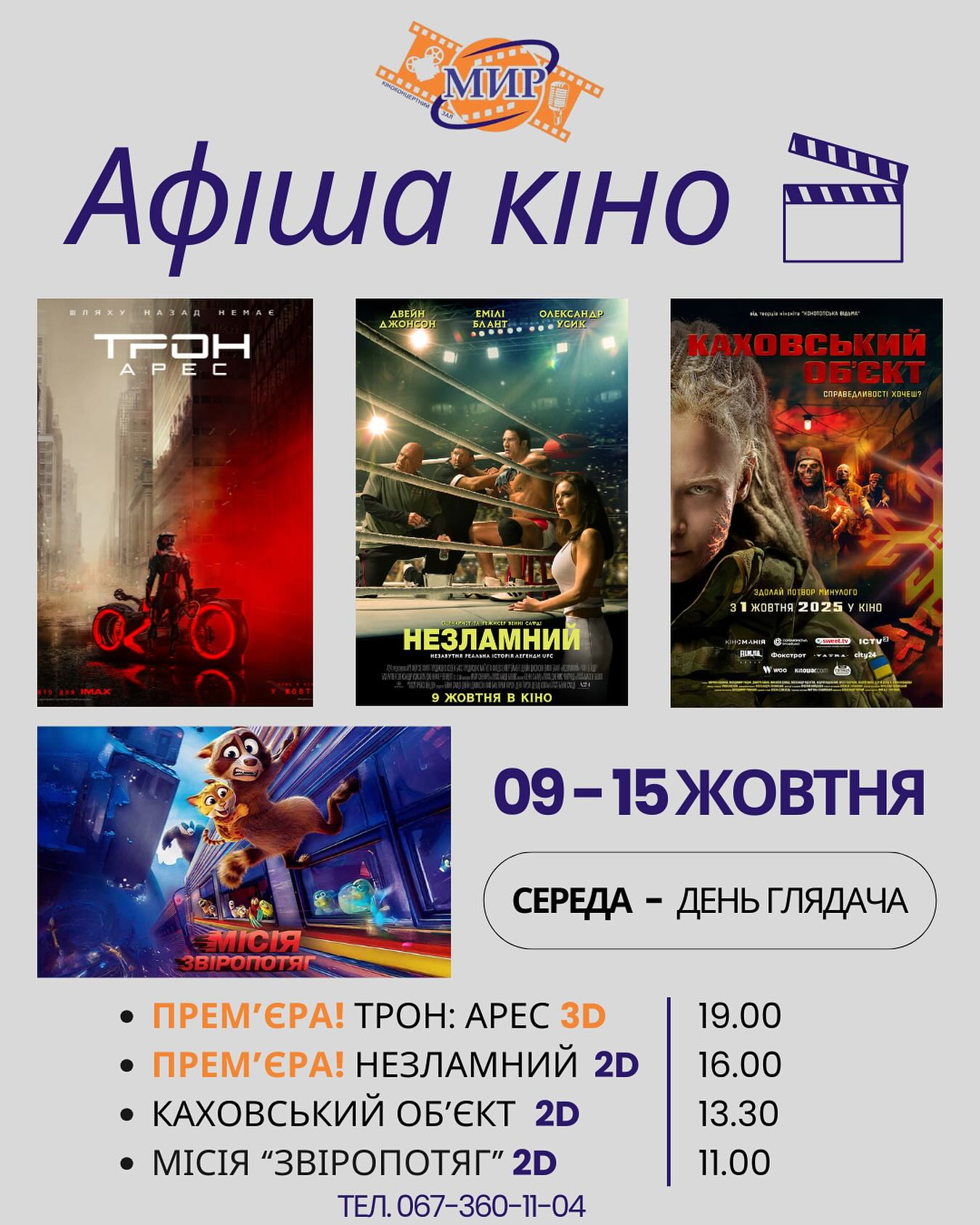 Яркая кинонеделя в киноконцертном зале "МИР" с 9 по 15 октября