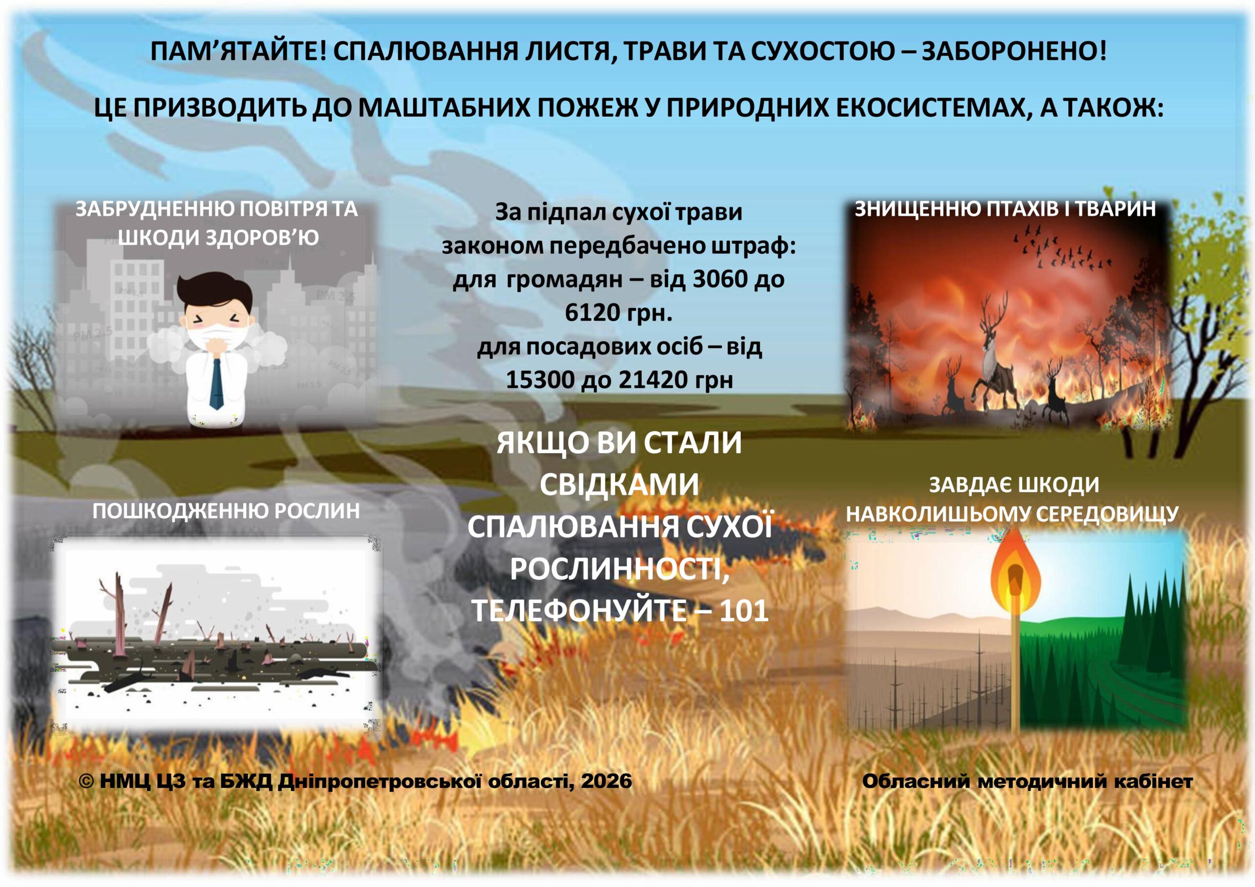 Жителей Каменского предостерегают от сжигания сухой растительности и напоминают об ответственности