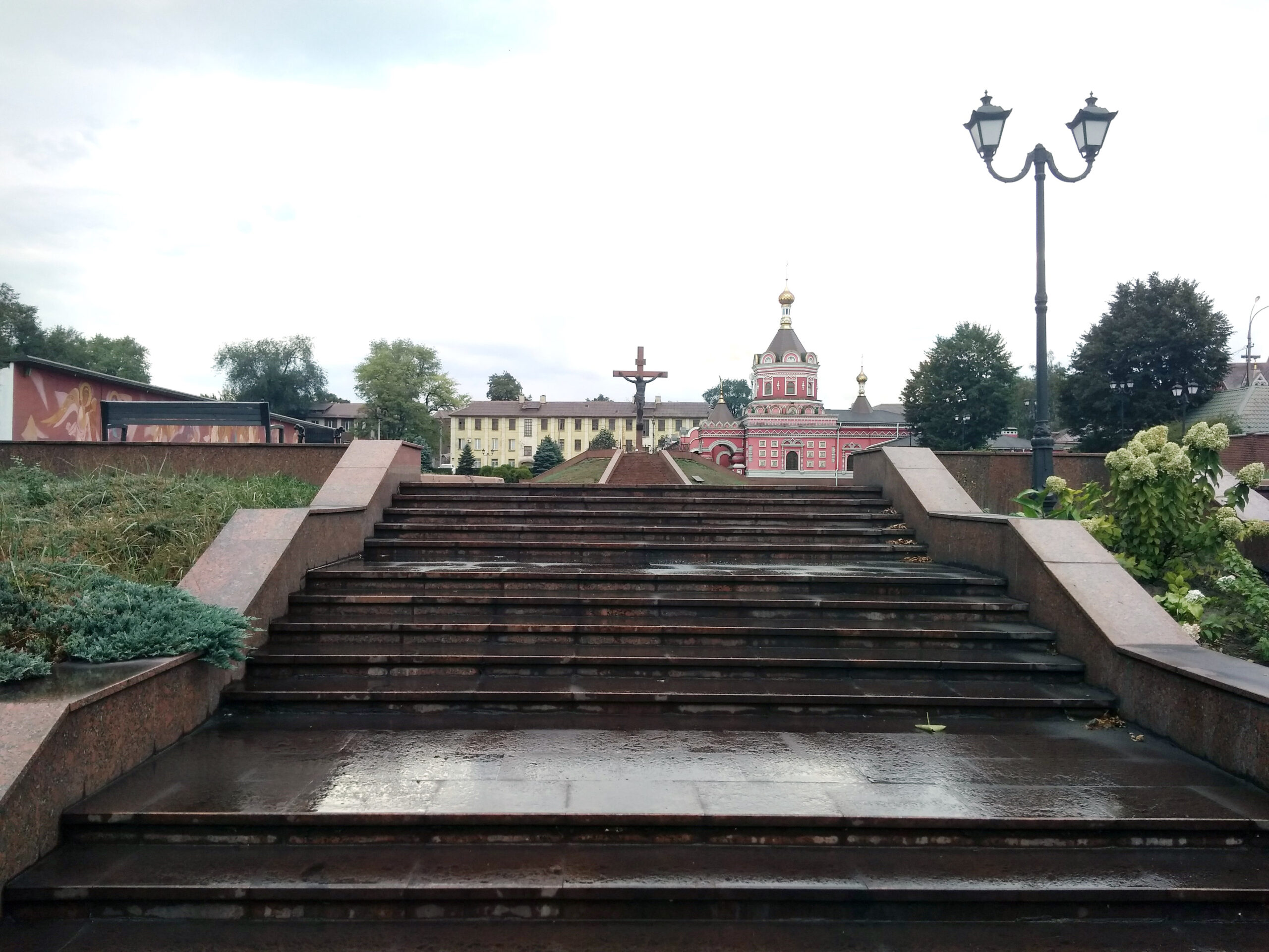 Монумент "Голгофа", художественное панно с библейскими сюжетами, соседний Свято-Николаевский собор и построенные впоследствии другие церковные здания образовали комплекс Соборной площади, призванной тогда стать одной из достопримечательностей Каменского.