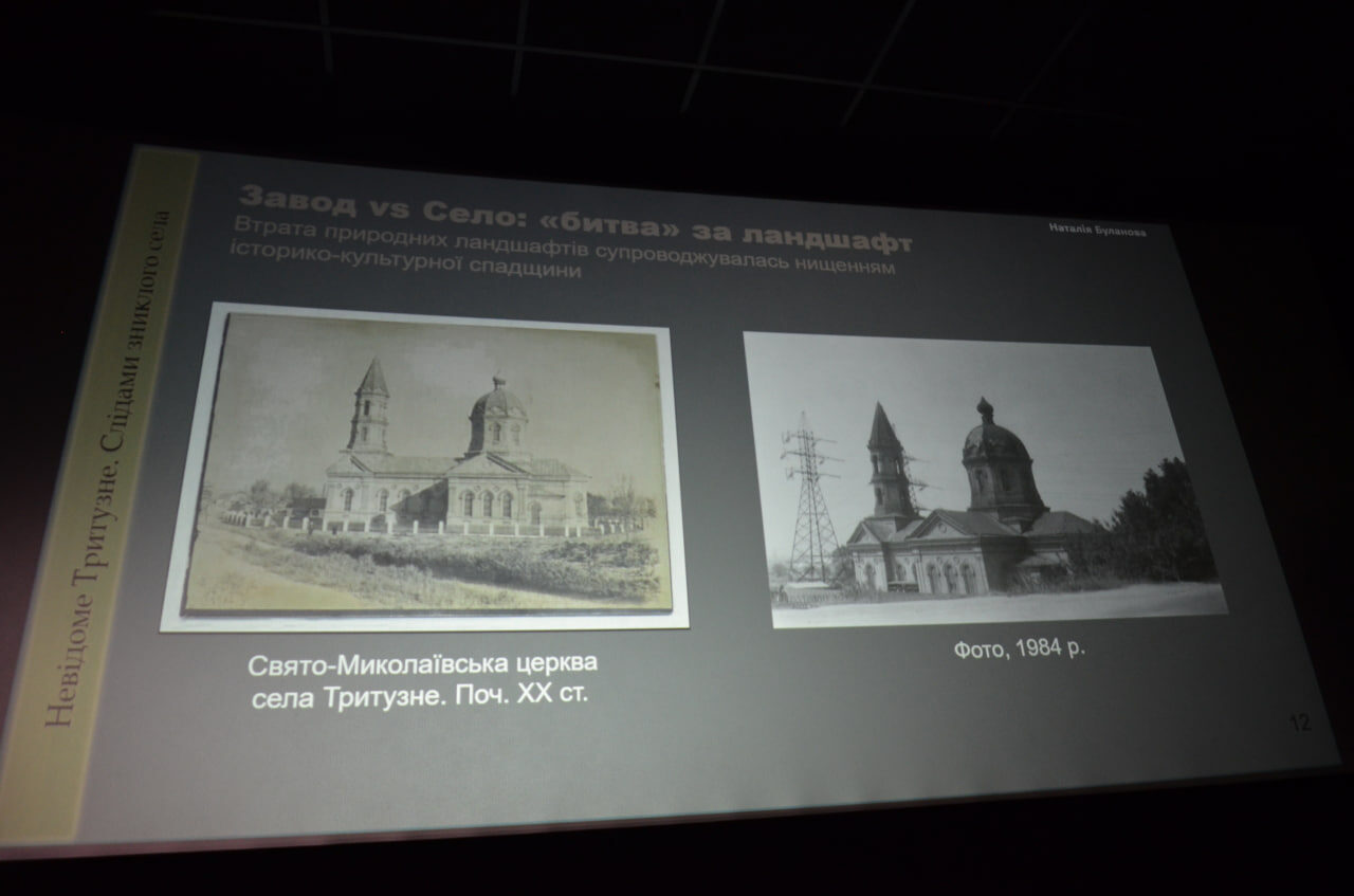 На презентации книги присутствовал отец Виталий Бажин — настоятель Свято-Николаевской православной церкви, которая была построена в Тритузном еще в 19 веке. Эта церковь пережила приход большевиков с их атеистическими взглядами, Голодомор и политические репрессии 30-х годов, нацистскую оккупацию и чудом уцелела во время строительства Приднепровского химического завода, который фактически поглотил легендарное казацкое село.
