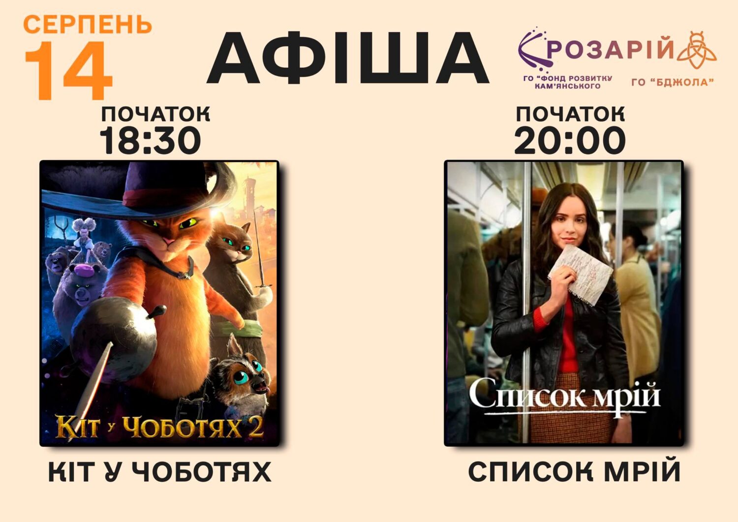 14 августа в Розарии Каменского покажут мультфильм и романтическую комедию