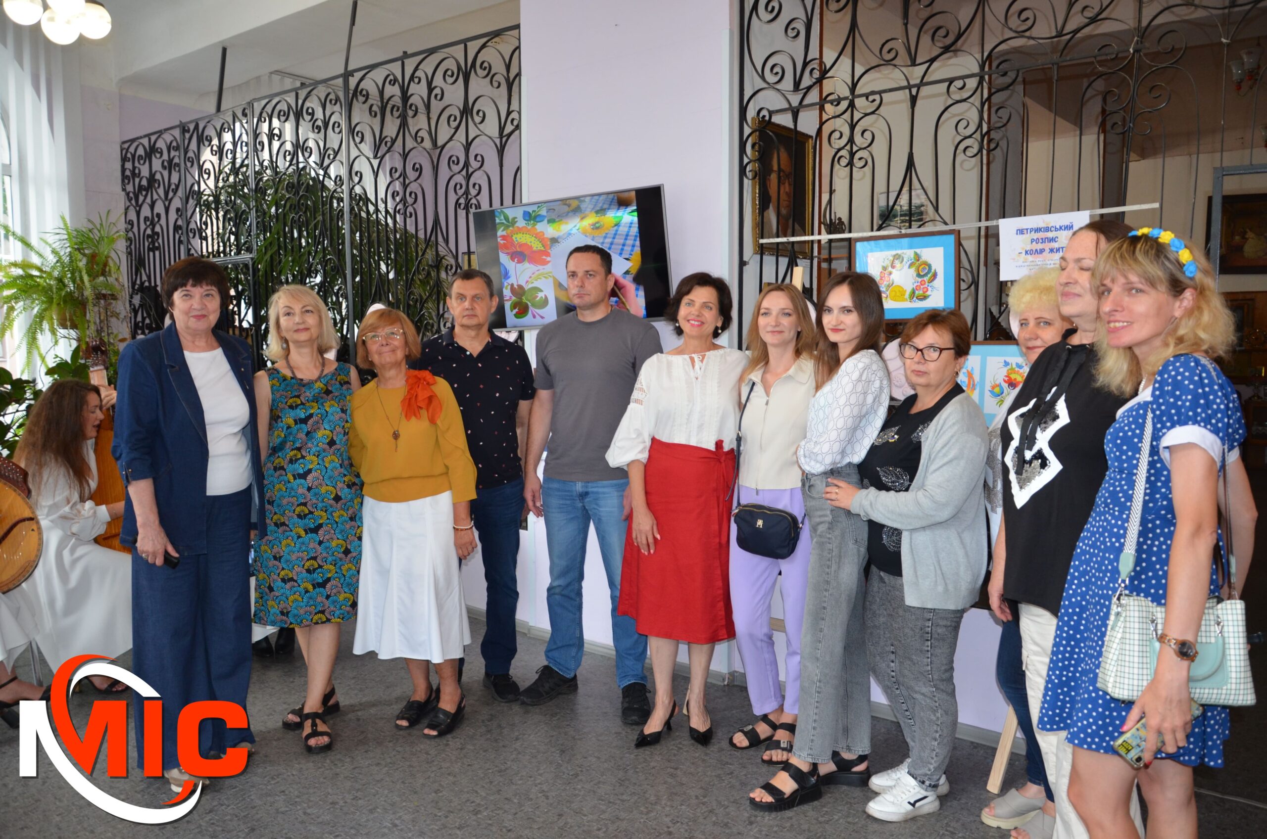 Свои картины на выставке представили жительницы Каменского и женщины, которые вынуждены были покинуть свои родные дома из-за войны и нашли приют в нашем городе. Для многих из них занятия петриковской росписью стали своеобразной терапией, они дали им возможность найти новых подруг и обрести силы после пережитых испытаний, почувствовать поддержку общества и приобщиться к магическому миру уникального украинского народного искусства, которое зародилось на Днепровщине в селе Петриковка.