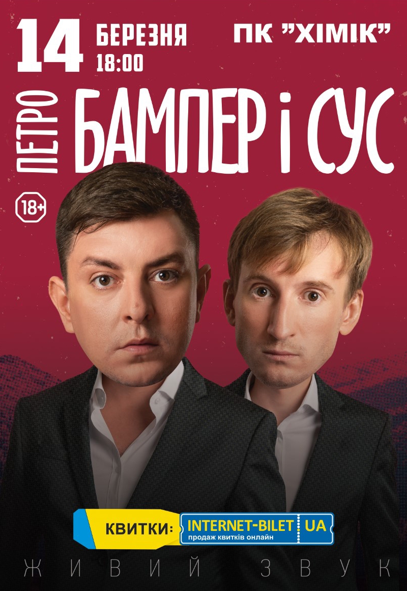 14 марта в Каменском во Дворце культуры "Химик" состоится концерт самого известного юмористического дуэта Украины — "Бампер и Сус".