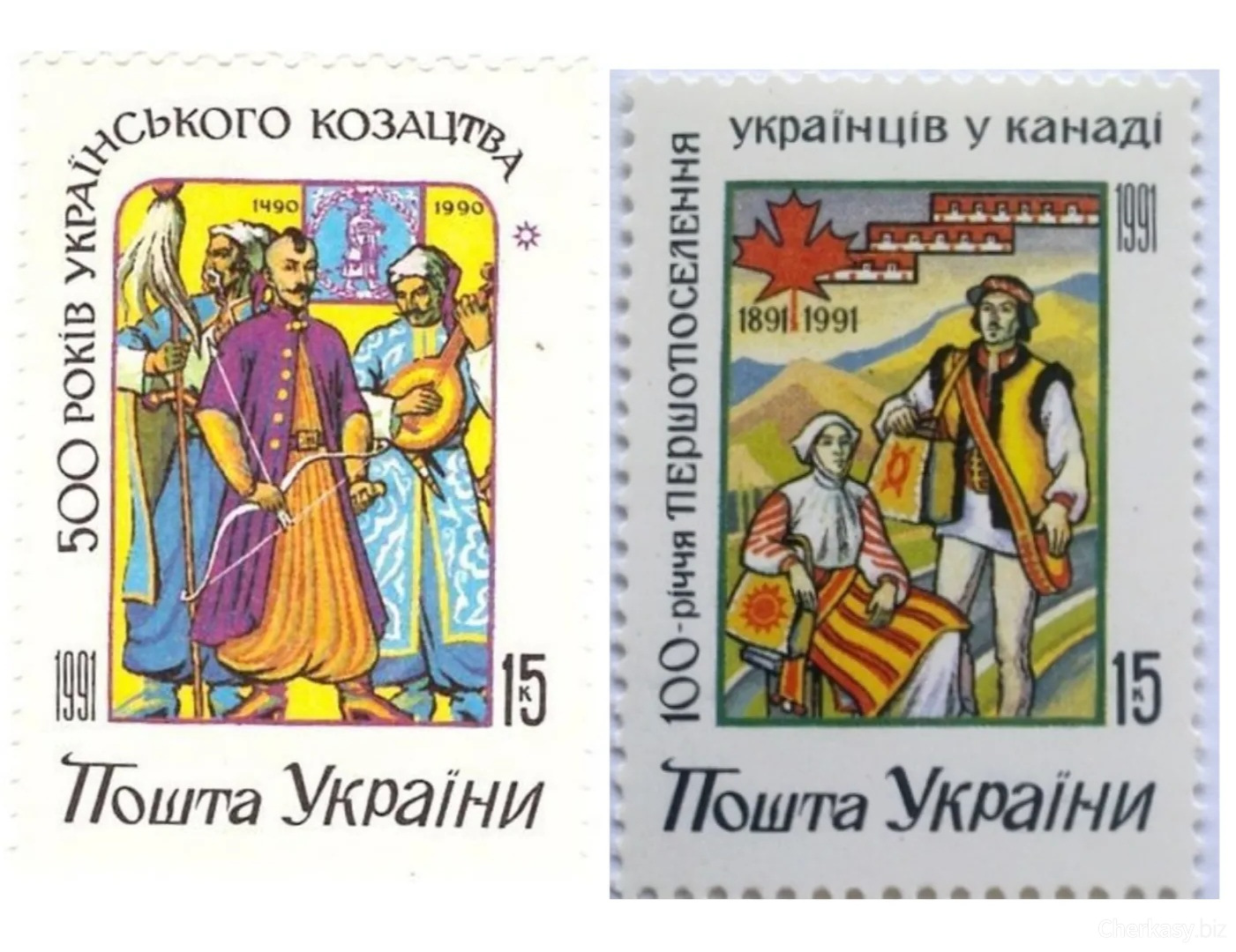 Если вспоминать о начале почтовой марки в Украине, то они появились в 1992 году, а именно первого марта. Тогда вышли две почтовые марки, посвященные 500-летию украинского казачества и 100-летию первого поселения украинцев в Канаде.