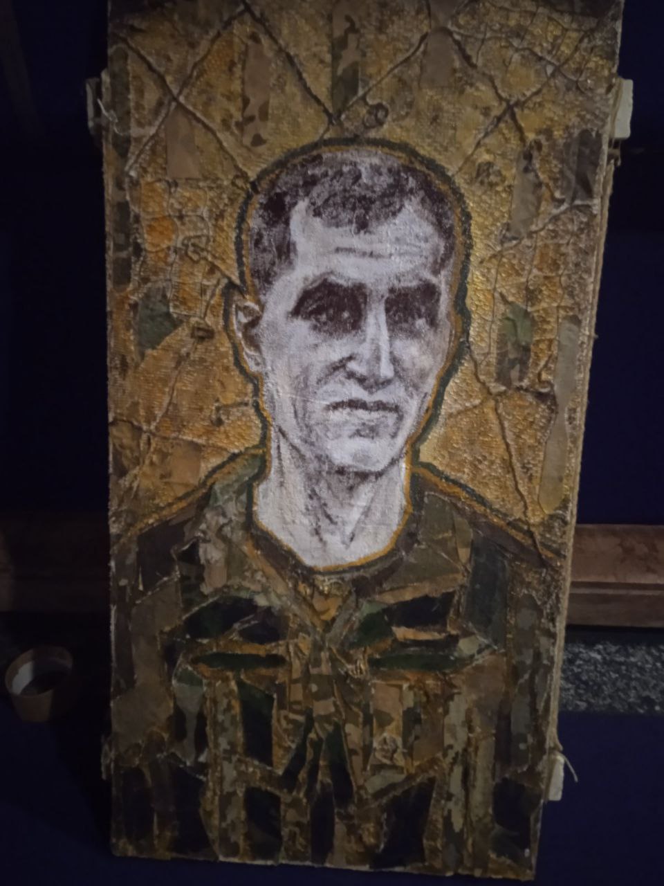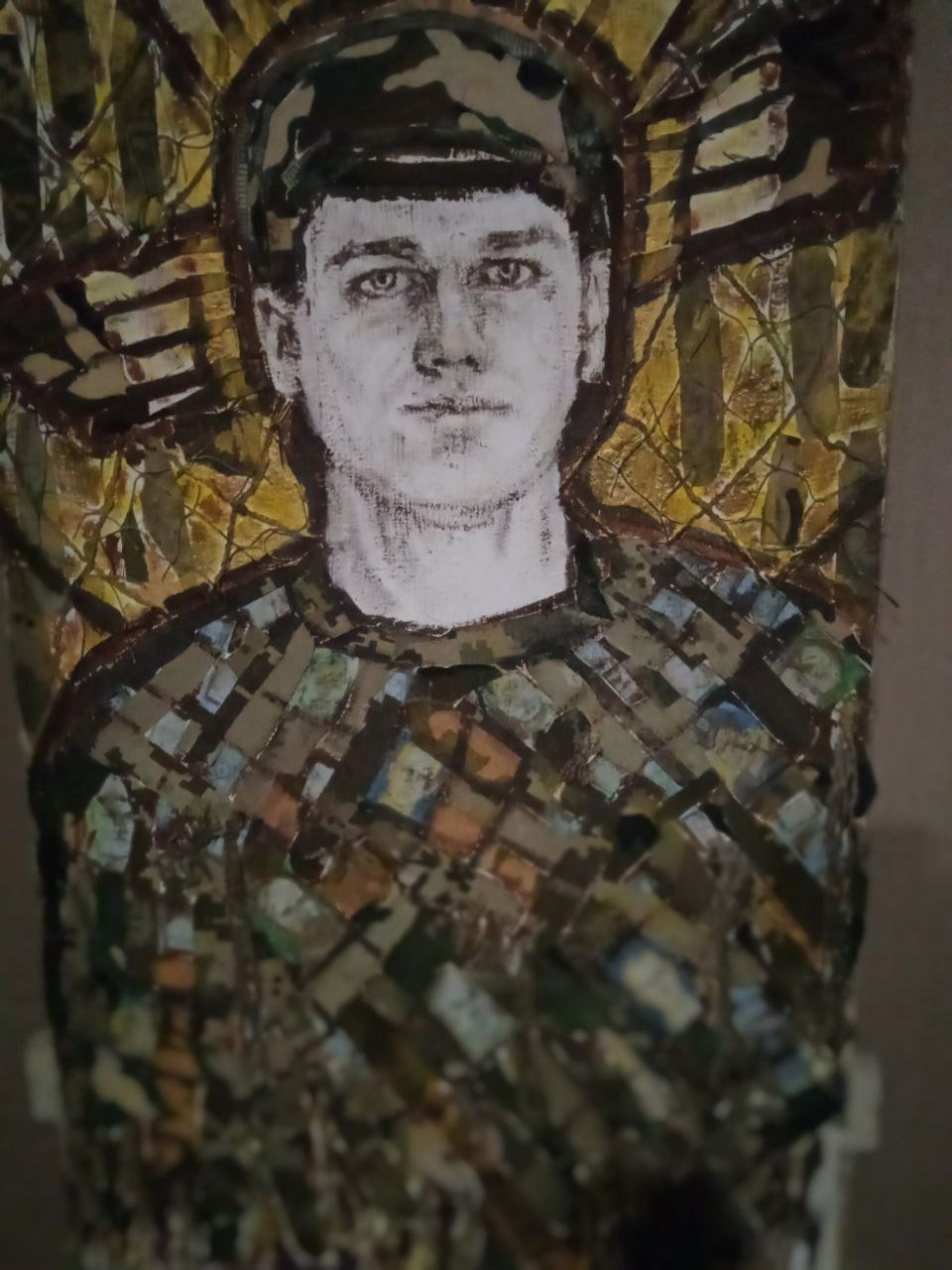 Портреты военнослужащих исполнены в оригинальной авторской технике: левкас, коллаж, золотой акрил. Герои выставки выписаны таким образом, что напоминают иконописные изображения. В общем, каждый портрет неповторим по детализации, напоминая своеобразную мозаику, в которой краска дополняется остатками маскировочной сетки, лоскутками одежды с пикселями, нитями для кикимор, создавая таким образом объемное изображение. Изюминкой картин Татьяны Сосулиной их основа – деревянные стенки и крышки ящиков из-под боеприпасов.
