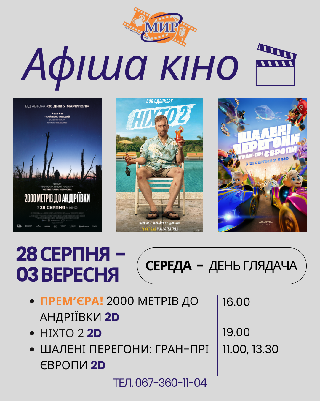 Киноконцертный зал "МИР" приглашает на просмотр лучших фильмов