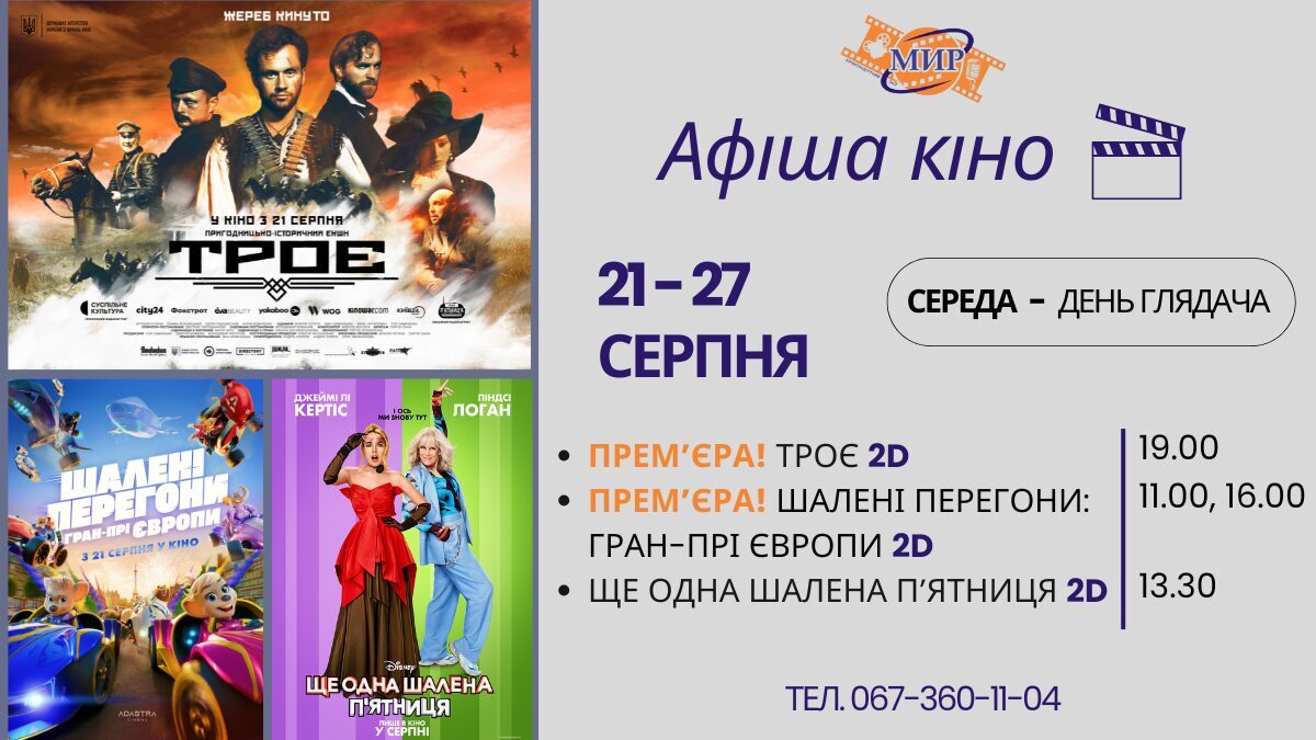 Киноконцертный зал "МИР" с 21 по 27 сентября приглашает на просмотр лучших фильмов