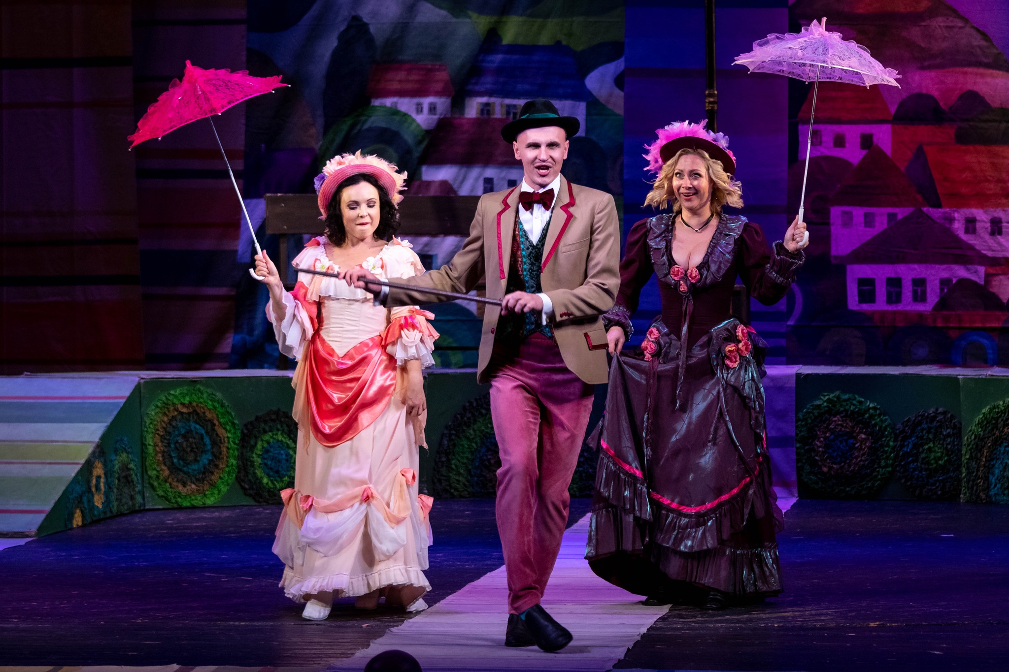 Настоящий калейдоскоп образов открывается зрителям во время спектаклей. Кто не помнит бессмертную комедию "За двумя зайцами", где Свирид Голохвастов красовался перед Проней Прокоповной в своем элегантном канотье или помпезном цилиндре? А сама Проня? Каждый ее выход — это попытка поразить потенциального жениха оригинальными головными уборами по "последней парижской моде".