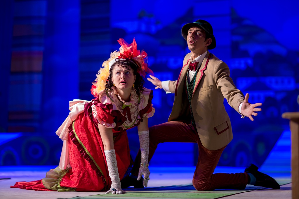 Увидеть спектакль "За двумя зайцами" с нынешним актерским составом зрители смогут уже 3 июля. Однако благодаря пресс-служба театра, которая предоставила нашей редакции уникальные фотографии с премьерного показа этого спектакля в 2016 году, мы имеем возможность вернуться в прошлое и посмотреть как выглядели персонажи спектакля 9 лет назад.