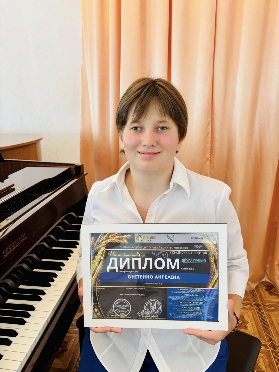 • Ангелина Снитенко (номинация "Фортепиано") – диплом II премии за музыкальное произведение И. Бриль "Крепкие пальцы".