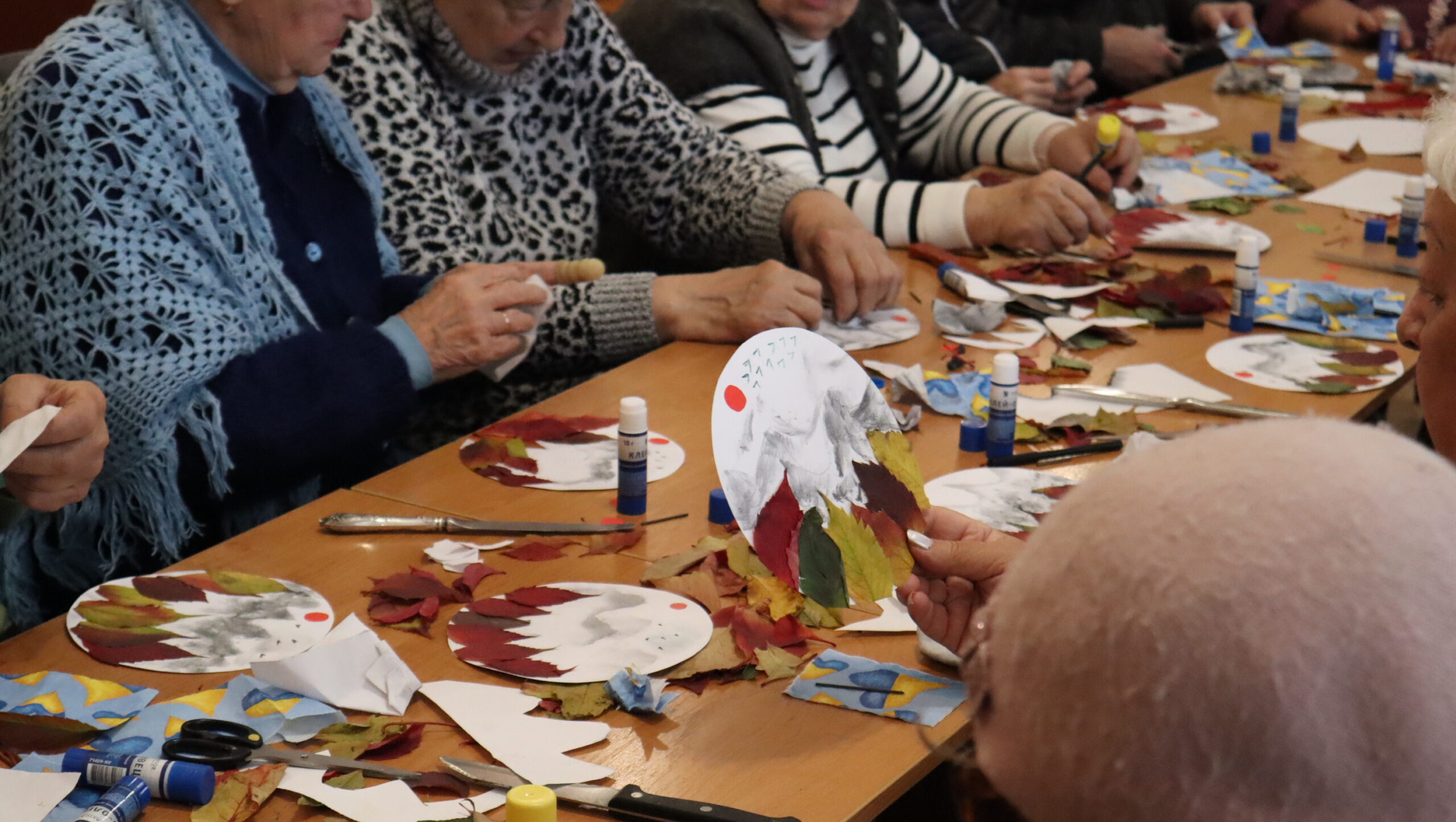 - Тепло для самых старших. Для людей почтенного возраста, включая пострадавших от нацизма, состоялся мастер-класс по изготовлению поздравительной осенней открытки. В завершение участники получили пакеты гуманитарной помощи.