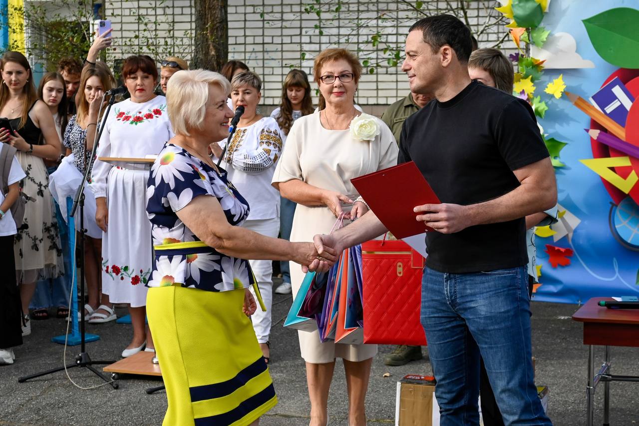 "Сегодня посетил праздничное мероприятие в Лицее №25 и поздравил коллектив с началом учебного года. Учреждение уже не первый год проводит благотворительную акцию "Донаты вместо цветов", в этот раз собранные средства передадут нашим воинам из 138-й зенитной ракетной бригады. Это прекрасный пример единства и заботы о тех, кто ежедневно защищает страну.