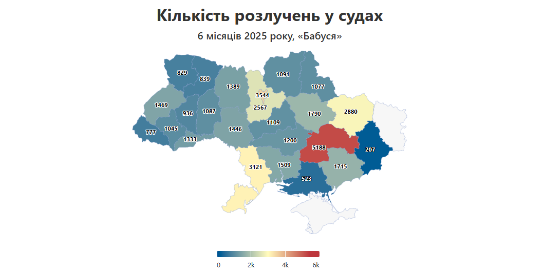 В первом полугодии 2025 года Днепропетровщина стала абсолютным лидером по количеству расторгнутых браков. За шесть месяцев в области развелись 5188 пар — это 13% от всех судебных решений, внесенных в судебный реестр.