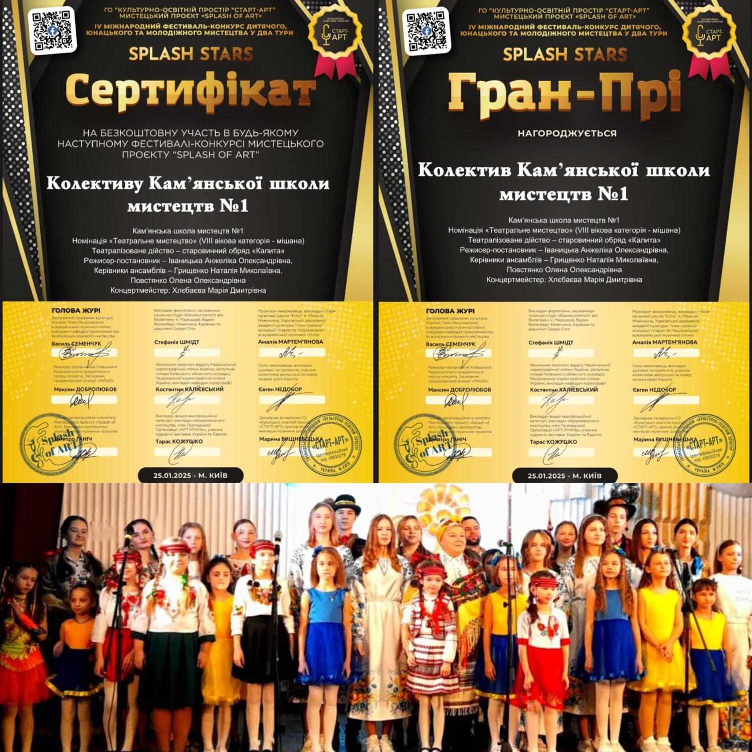 • Гран-при IV Международного фестиваля-конкурса "Splash Stars" (25.01.2025, Киев) и сертификат на бесплатное участие в следующем конкурсе.