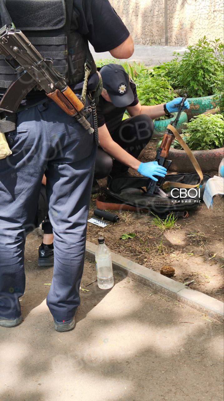 Автомат с глушителем и граната: в Кривом Роге в клумбе нашли рюкзак с оружием
