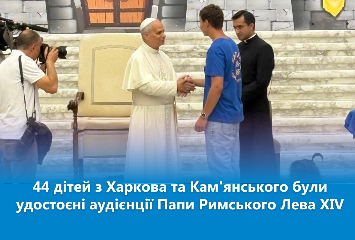 В Ватикане 44 ребенка из Каменского и Харькова были удостоены аудиенции Папы Римского Льва XIV. Среди них дети из прифронтовых регионов и внутренне перемещенных семей военнослужащих, ветеранов, погибших или пропавших без вести.