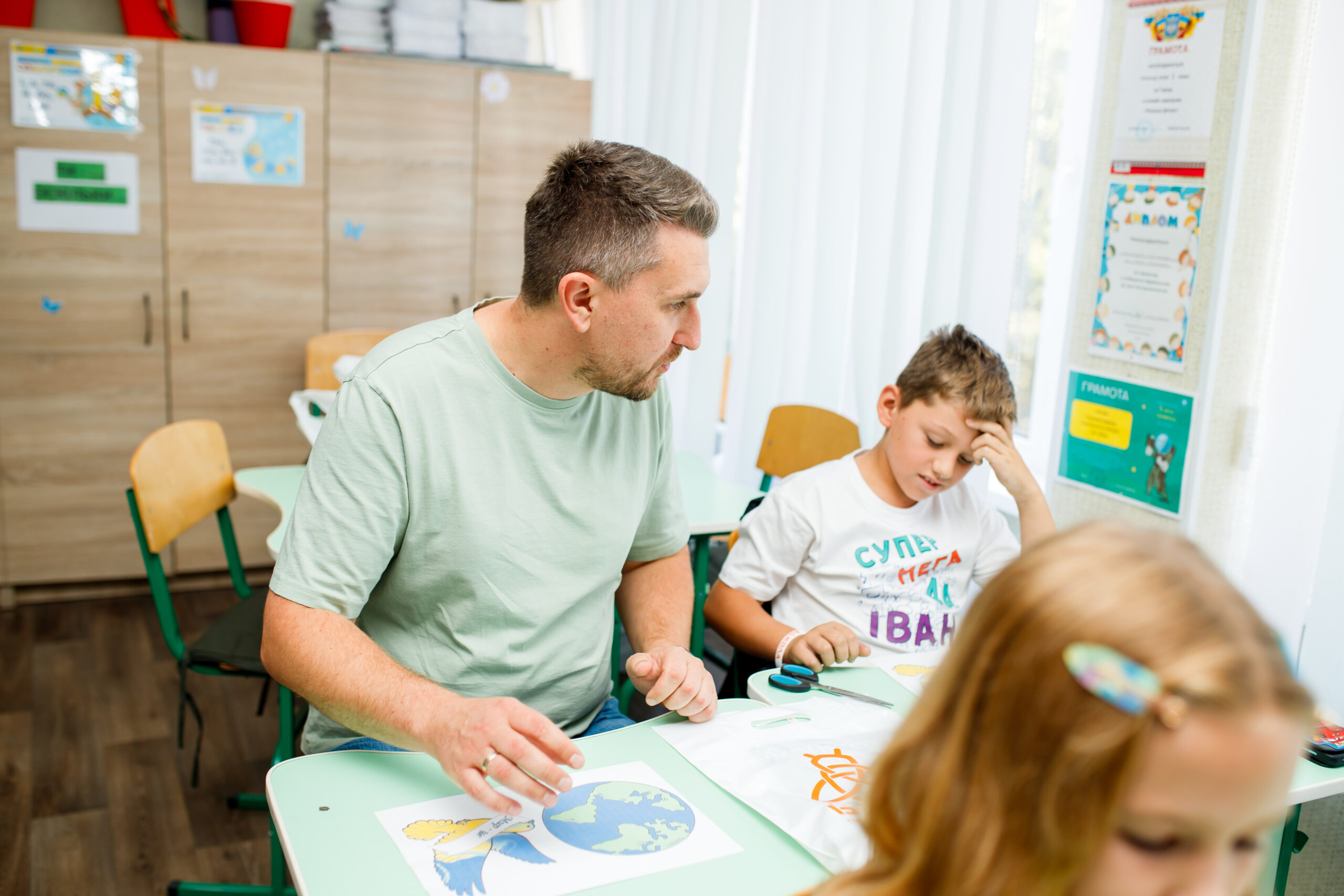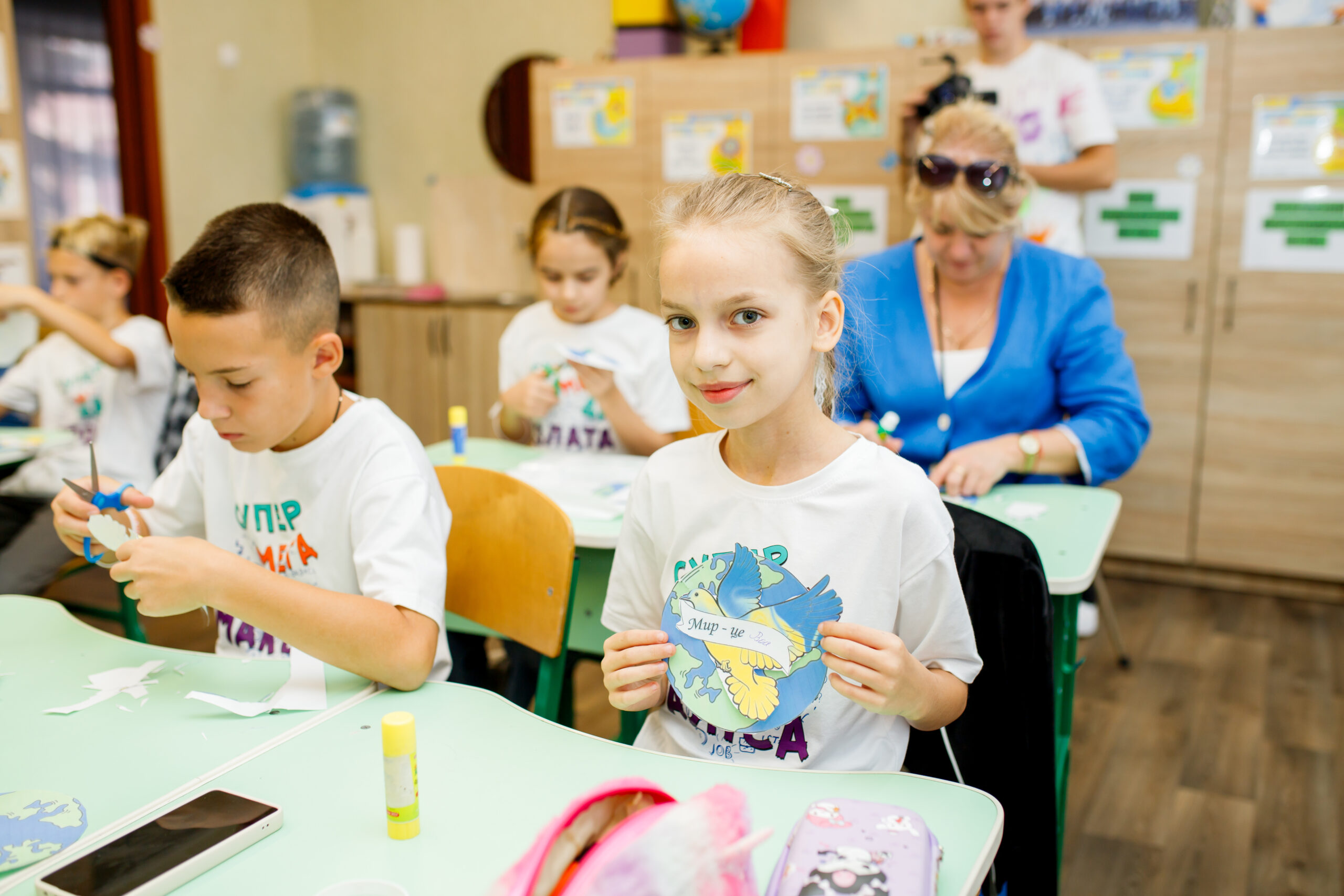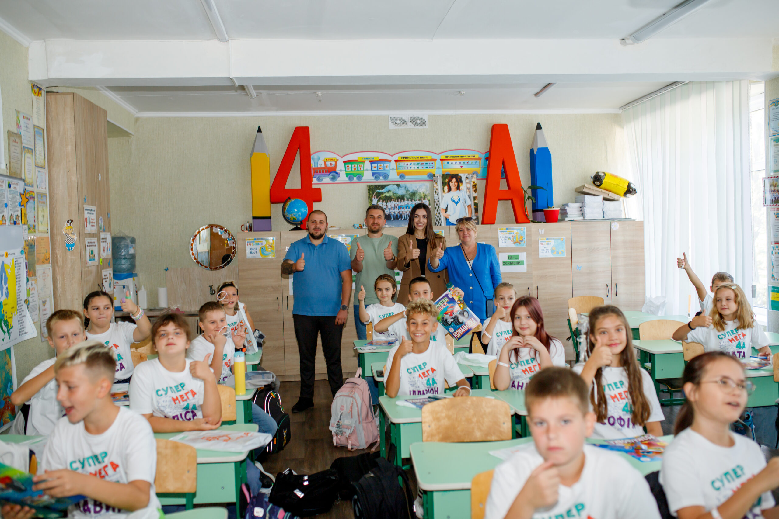 На акцию пришли представители ОО "Бджола" — Лариса Полюлях, Алина Вовна и Виталий Мандзюк. Они поддержали школьников и подарили наборы для настольного тенниса, канцтовары и игры для детского досуга.
