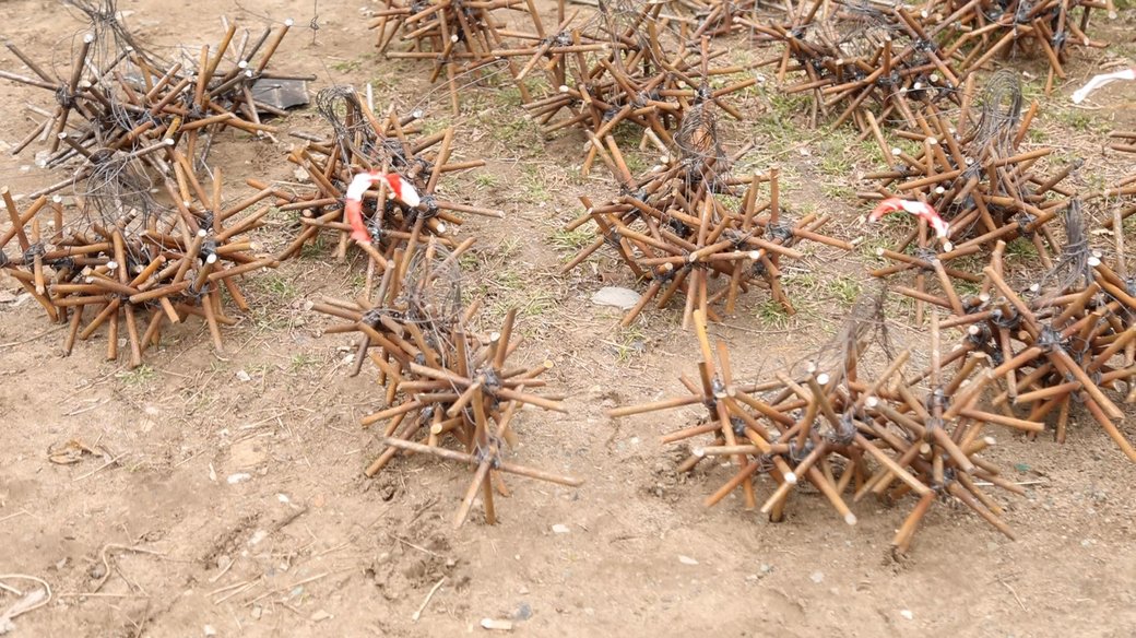 В борьбе со своими врагами, украинские казаки часто использовали военное заграждение под названием "чеснок", которое состоит из нескольких соединенных звездообразных острых стальных или деревянных штырей, направленных в разные стороны. После полномасштабного российского вторжения в Украину разнообразные современные аналоги средневековых "чесноков" изготавливались собственноручно патриотами и разбрасывались на пути продвижения колонн оккупантов.