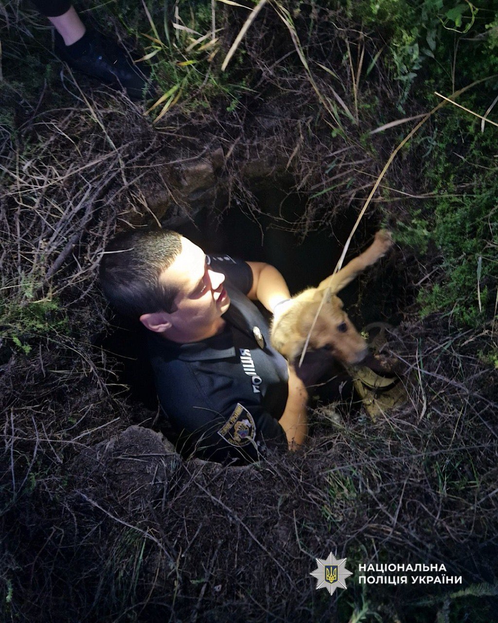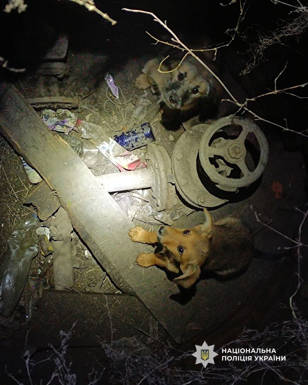 В поселке Солёное двое маленьких щенков упали в люк и не могли выбраться самостоятельно. Местные жители обратились за помощью к полицейскому офицеру громады Сергею Вознюку из Днепровского районного управления полиции №1.