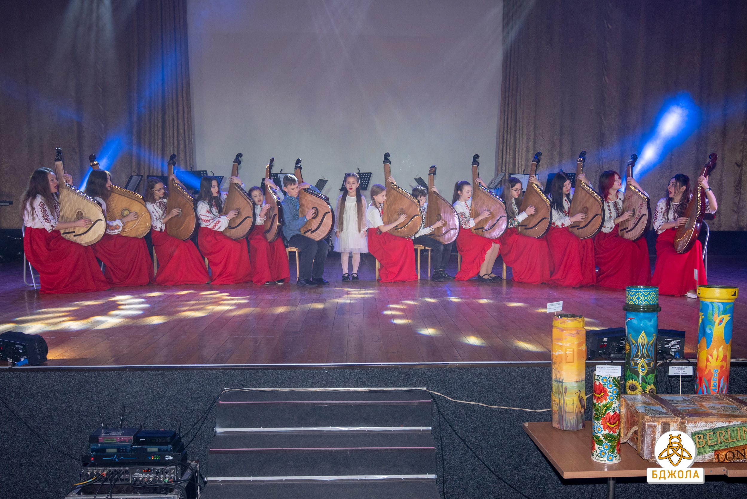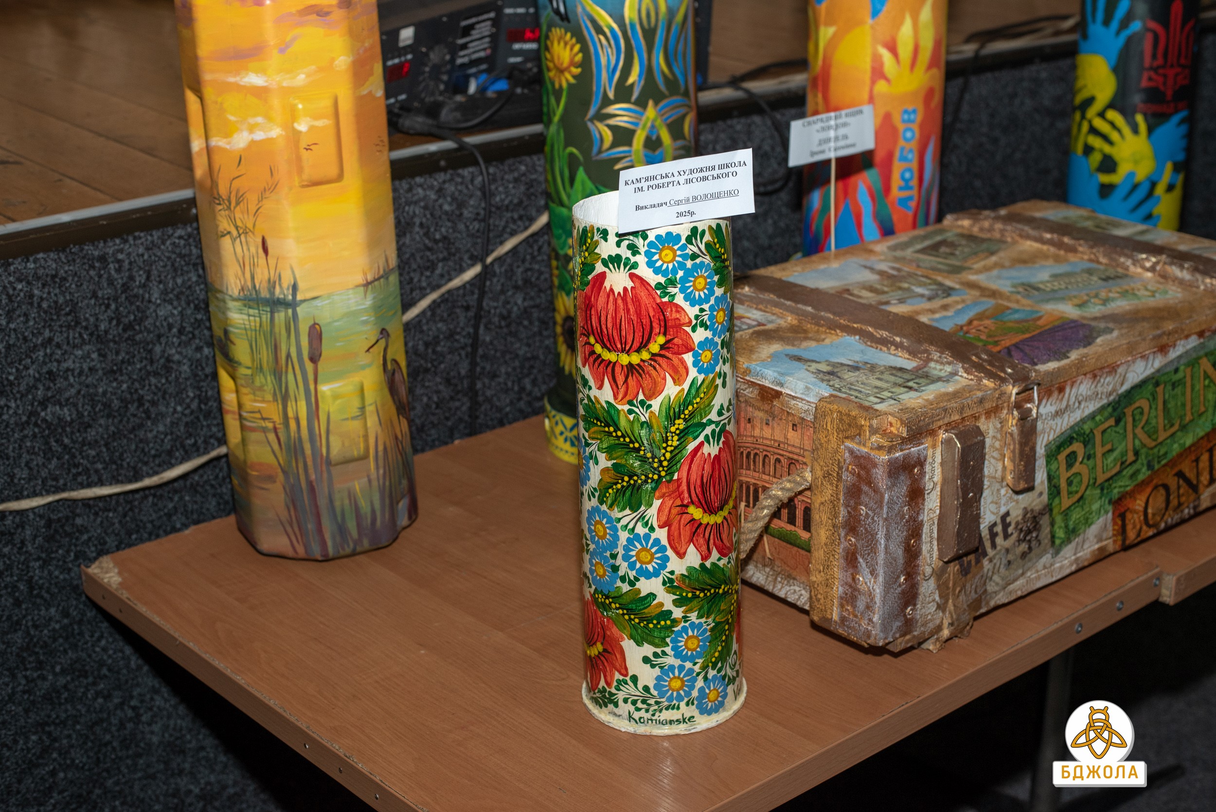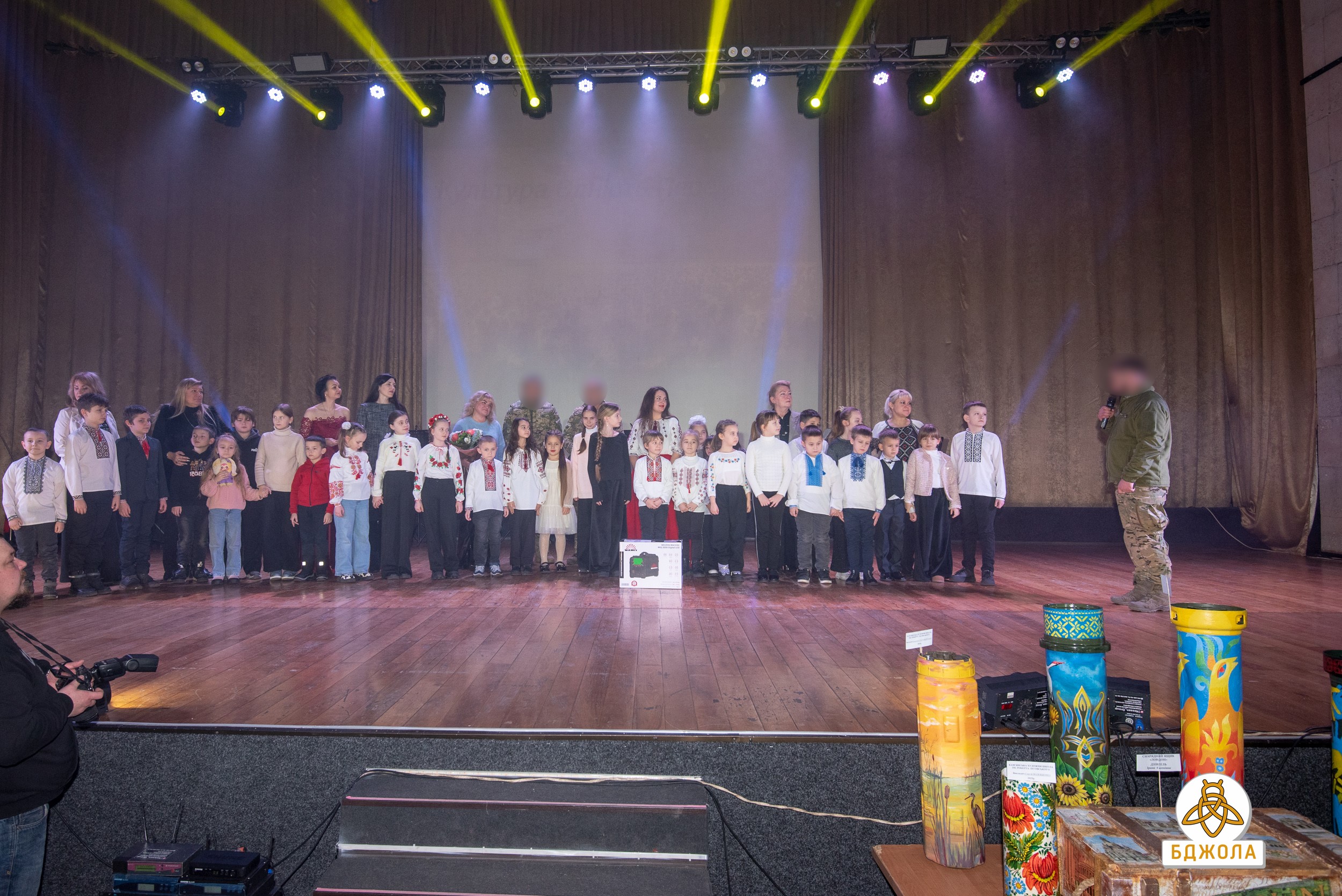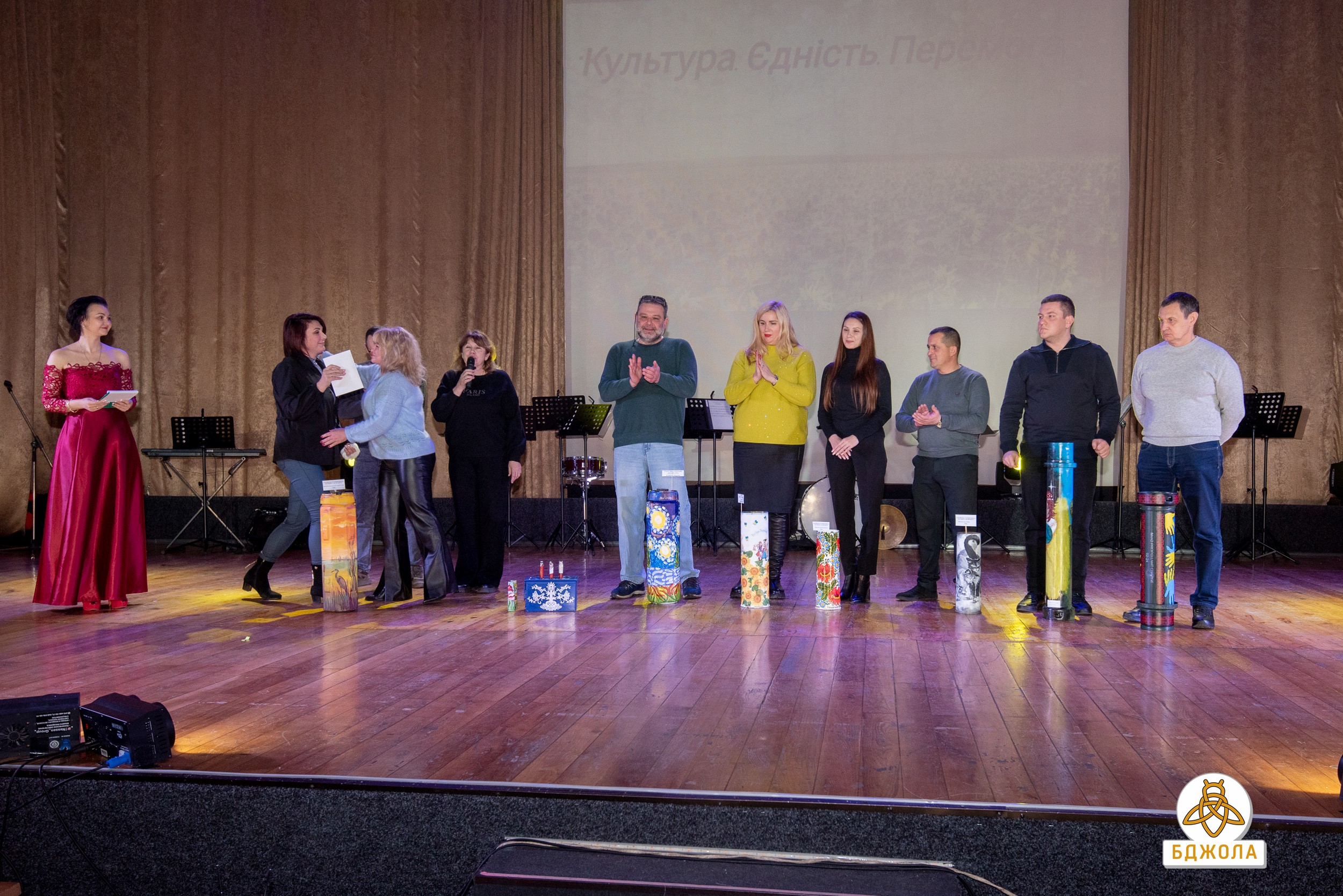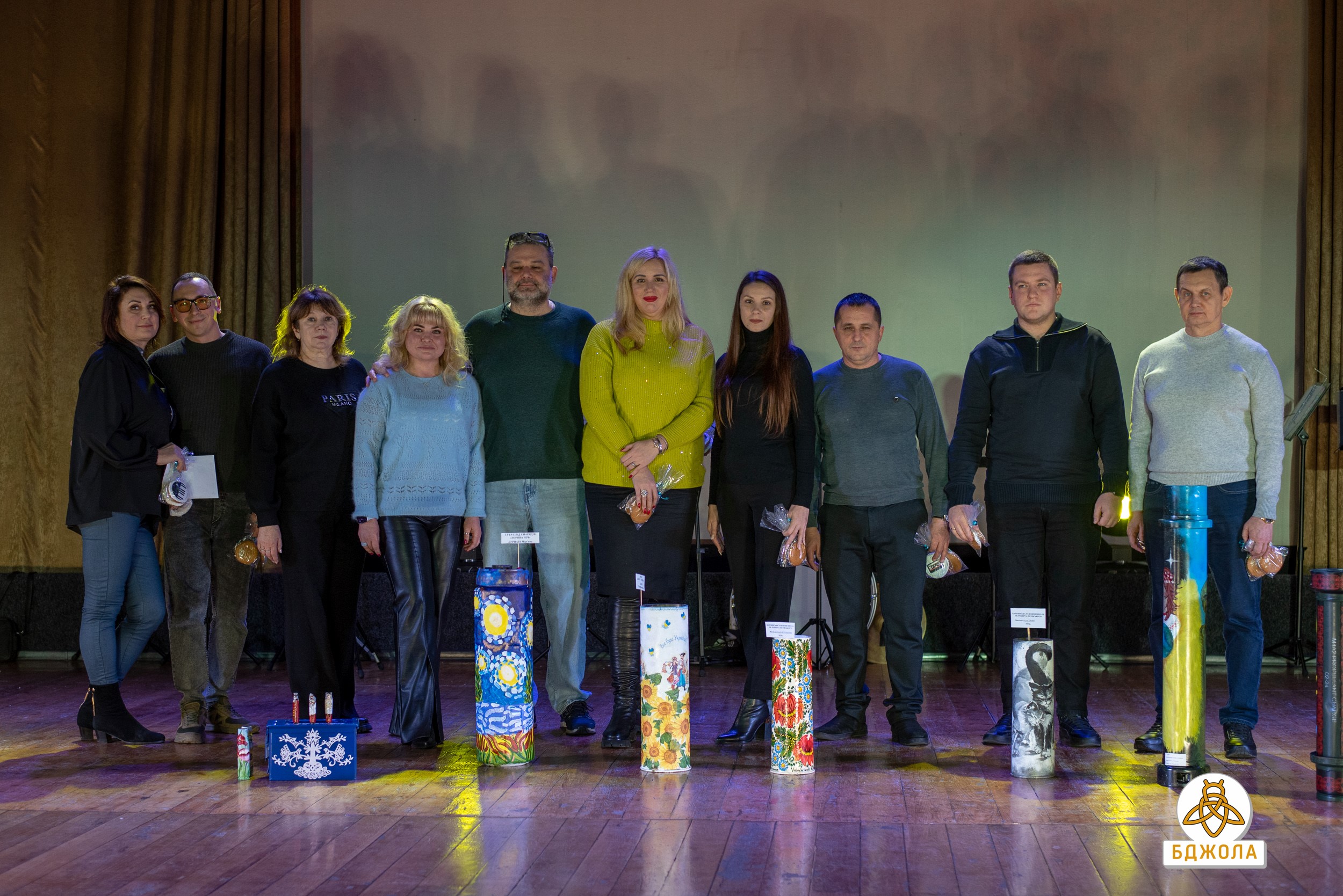 Особый интерес зрителей вызвало выступление сводного ансамбля художественных школ "Бандурний тандем", который органично соединил народные инструменты с современными музыкальными формами. Значимой частью вечера стал благотворительный аукцион: использованные гильзы и тубусы, художественно оформленные преподавателями изобразительного искусства, превратились в уникальные арт-объекты. Все средства, вырученные в ходе аукциона, были направлены на нужды Вооруженных сил Украины.