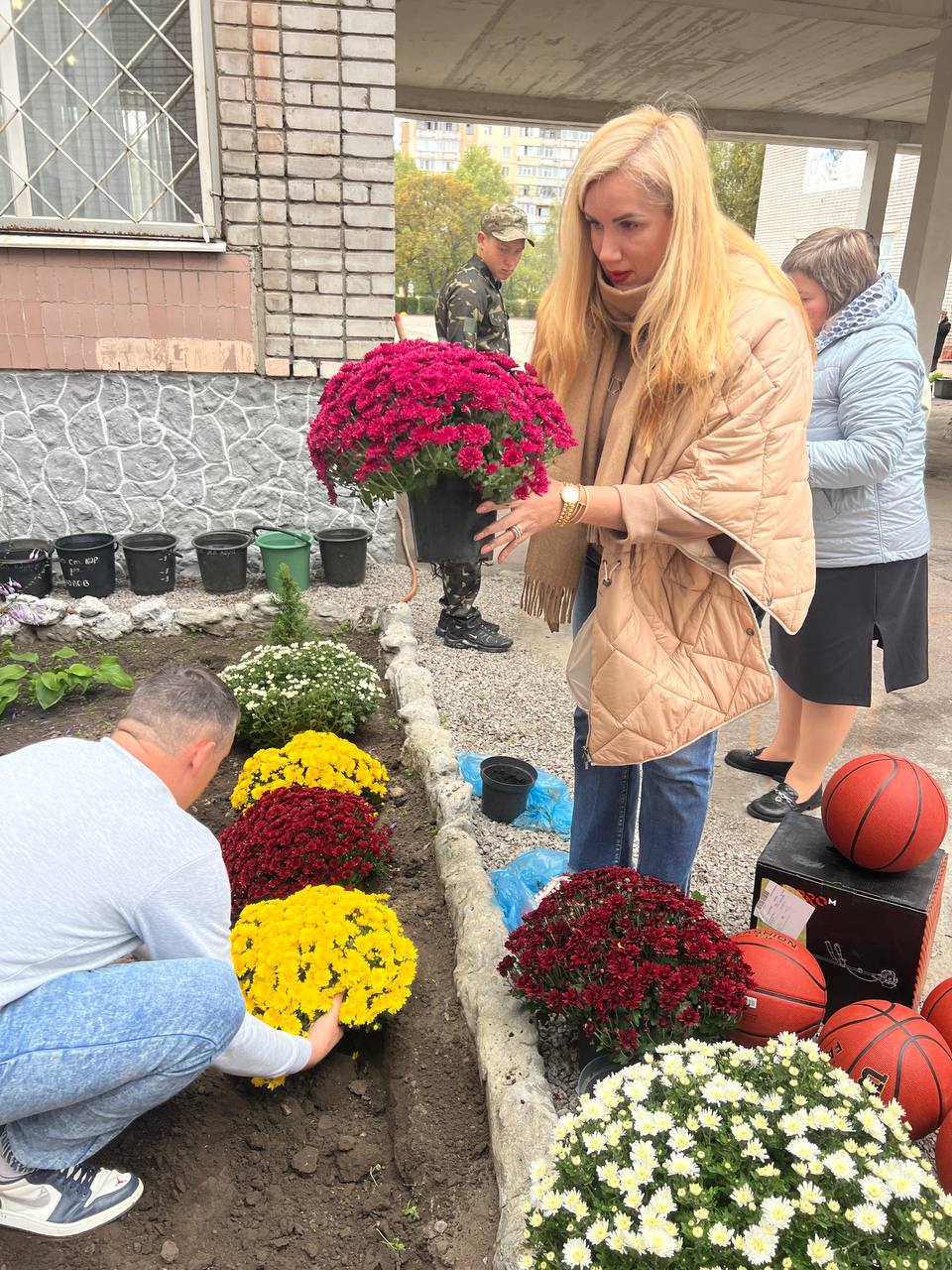 Гости подарили не только цветы для посадки, но и триммер, спортивные мячи и обновлённую спортивную площадку, а также оказали моральную поддержку учреждению.