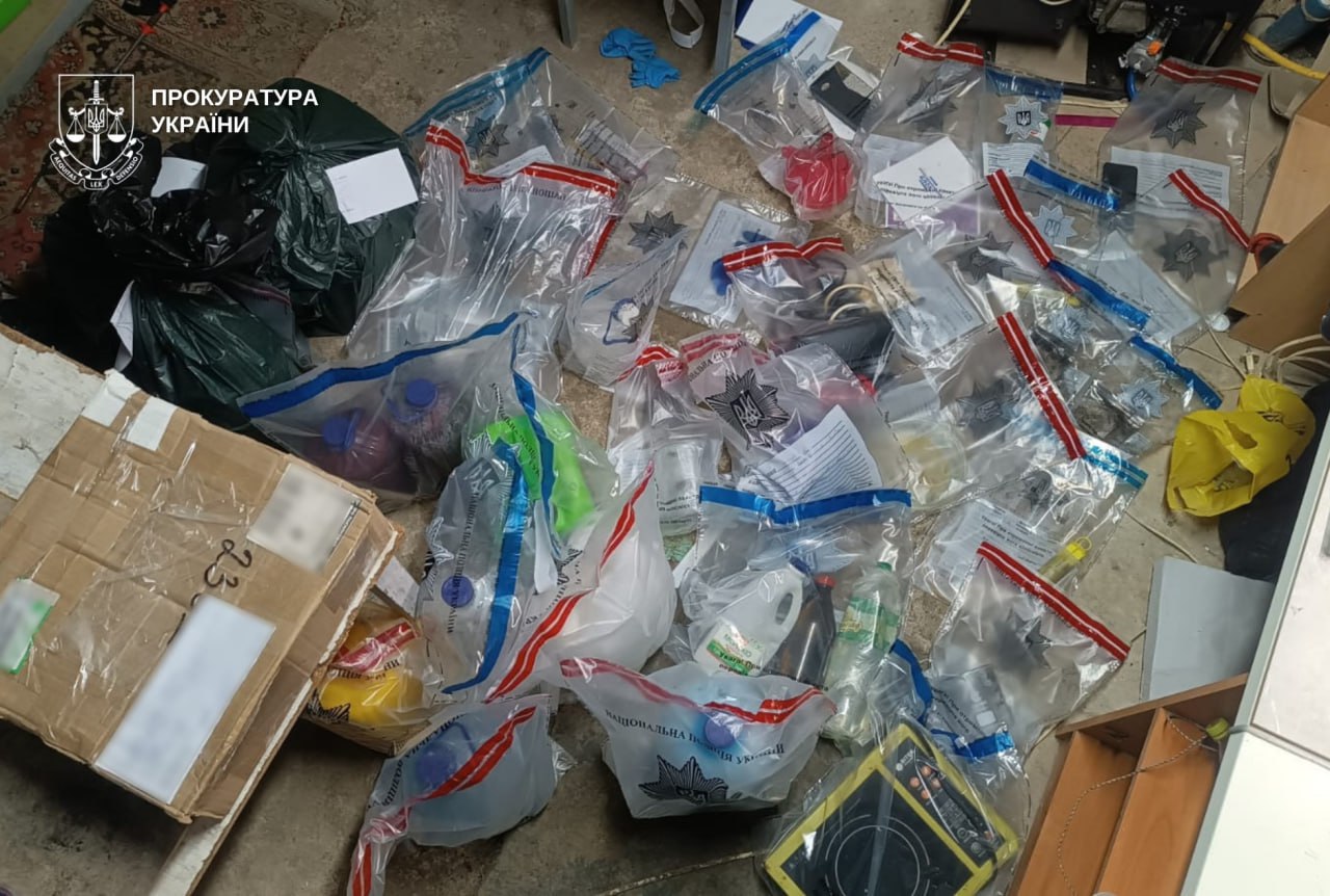 В рамках десяти одновременных обысков по местам проживания фигурантов и непосредственно в цехах следователи собрали многочисленные вещественные доказательства. Среди найденного — около 1 кг психотропа, стоимость которого по ценам "черного рынка" достигает 2 миллионов гривен, а также слип-пакеты с каннабисом и запасы прекурсоров. Кроме того, на объектах конфисковали лабораторное оборудование и инструменты для изготовления запрещенных веществ, а также изъяли мобильные телефоны фигурантов и предполагаемый запал гранаты.