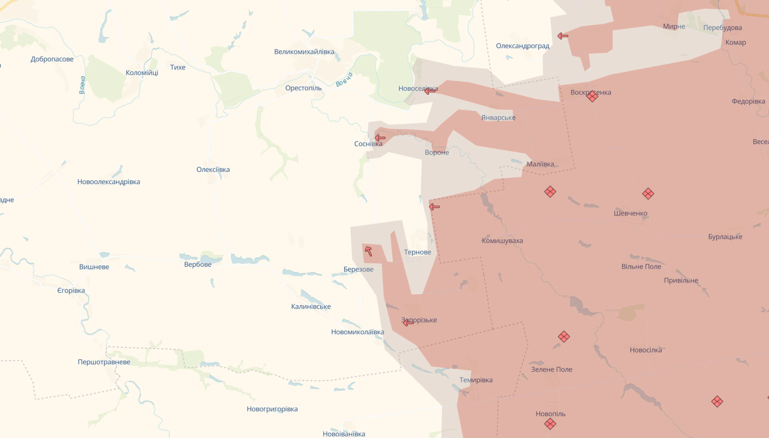 По данным аналитического проекта DeepState, враг продвинулся возле Малиевки, Новоселовки, Тернового и Березового в Днепропетровской области.