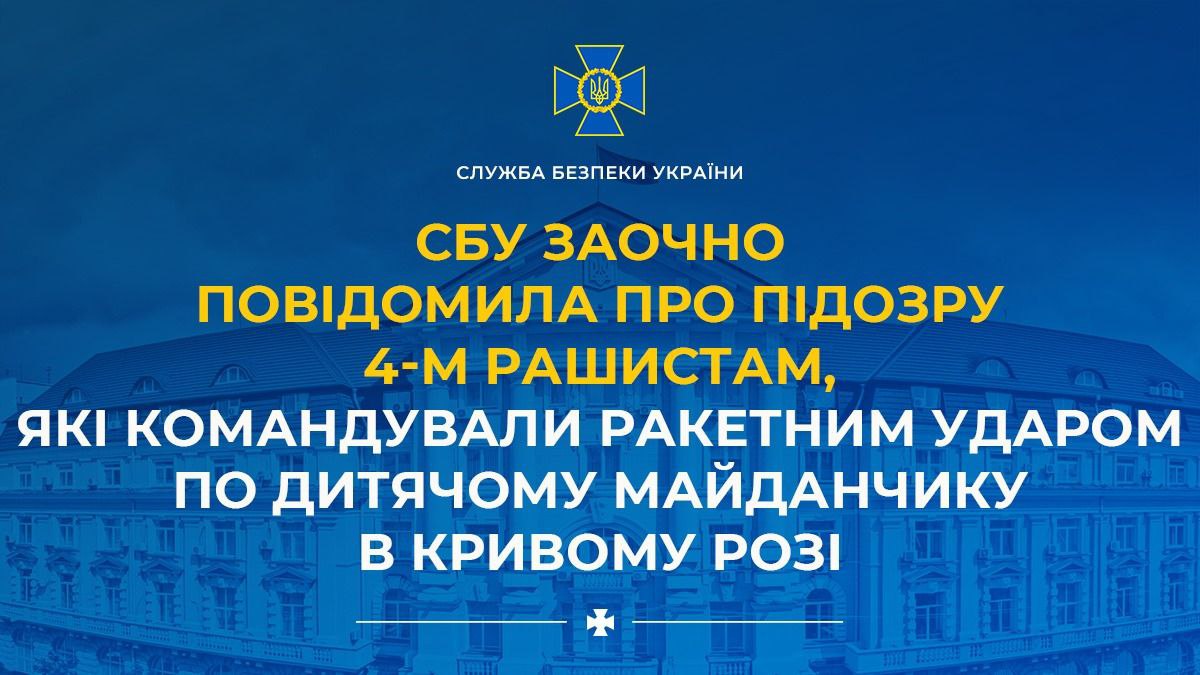 СБУ заочно сообщила о подозрении четырем российским генералам за ракетный удар по детской площадке в Кривом Роге